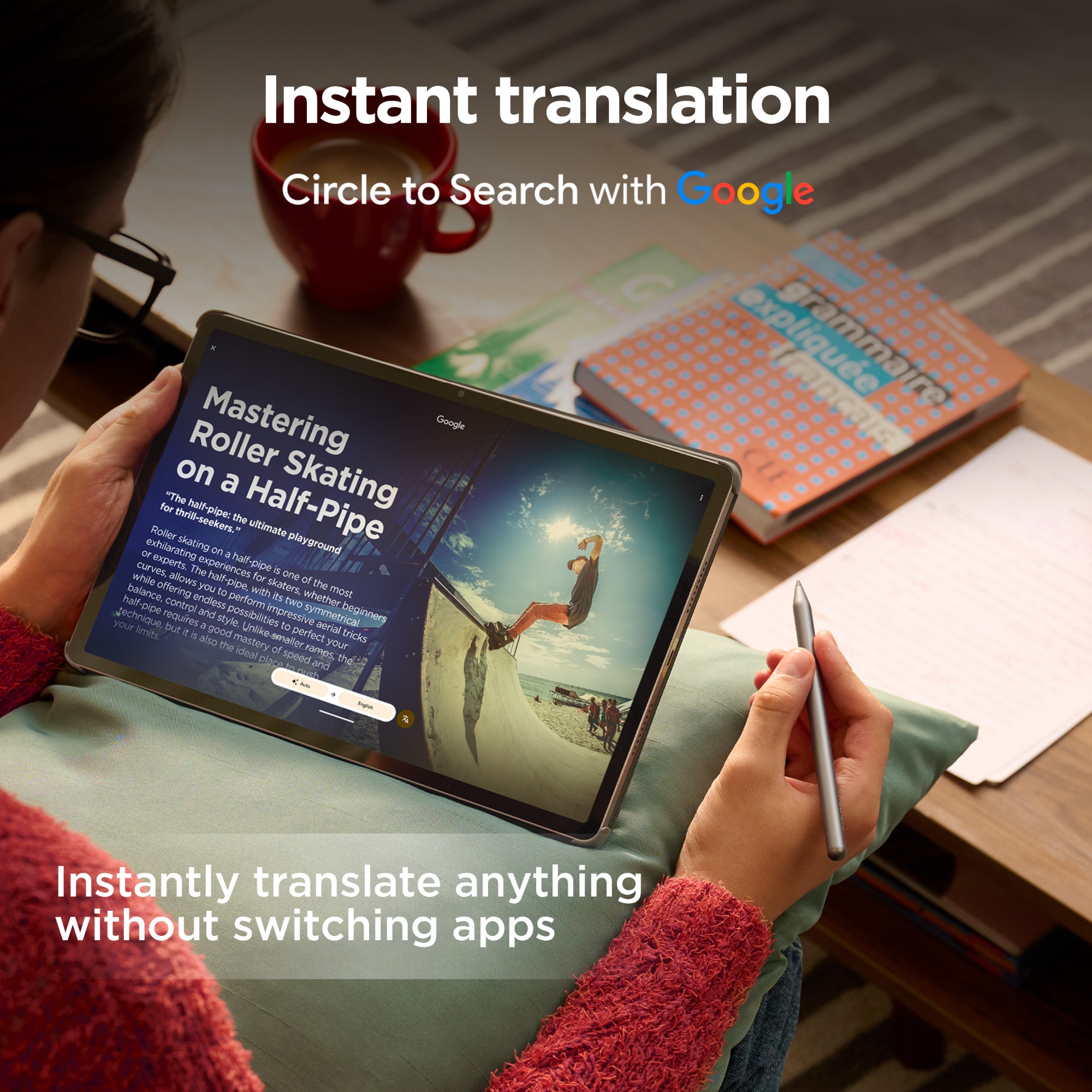 Instantly translate anything you see on your tablet with Circle to Search in two taps, using your fingers or the precision of the Lenovo Tab Pen Plus.