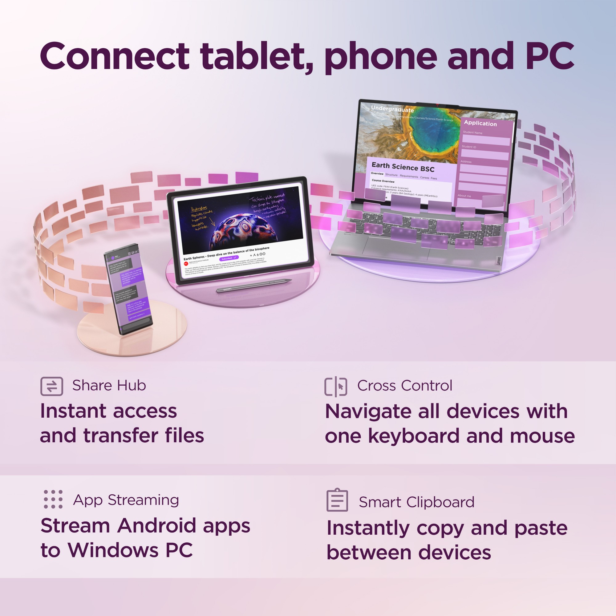One mouse and keyboard, total control. Cross Control lets you switch between your tablet, phone, and PC effortlessly. Need more screen space? Mirror or extend your PC to your tablet in seconds, making multitasking smarter and smoother.