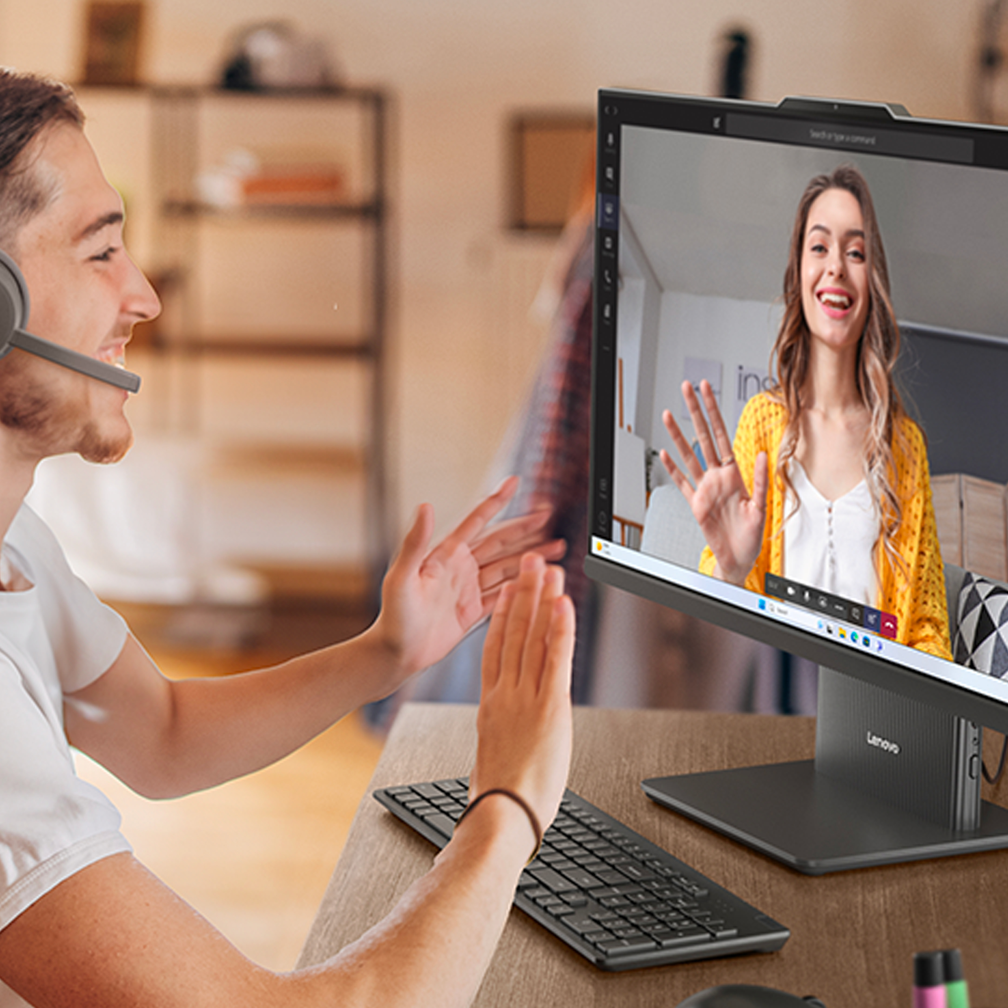 Experience crystal clear video calls and improved audio quality with Lenovo Smart Meeting. Our 5MP webcam, powered by AI algorithms, guarantees that you will always look your best on screen. No more background noise to disrupt your meetings, thanks to our Smart Noise Cancelling feature that picks up the main speaker's voice while filtering out voices and noise from the background. Say goodbye to distractions and hello to a more productive meeting all because of IdeaCentre AIO Gen 9’s purposeful and cutting-edge technology.