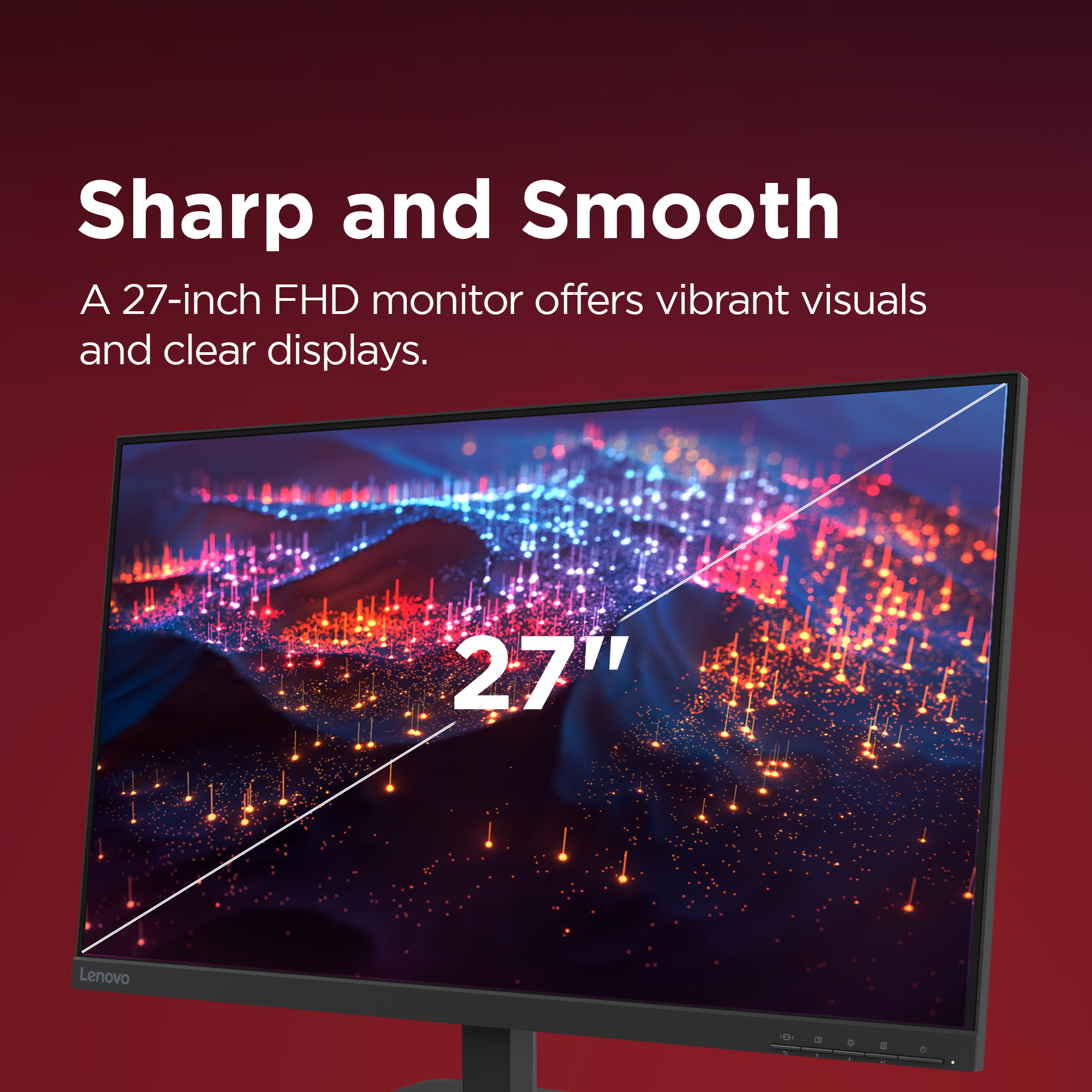 Crisp and clear image reproduction Level up your working experience with the 27-inch, FHD monitor that displays clear and vibrant visuals. Discover enhanced comfort with truly smooth visuals on the display’s 100Hz refresh rate.
