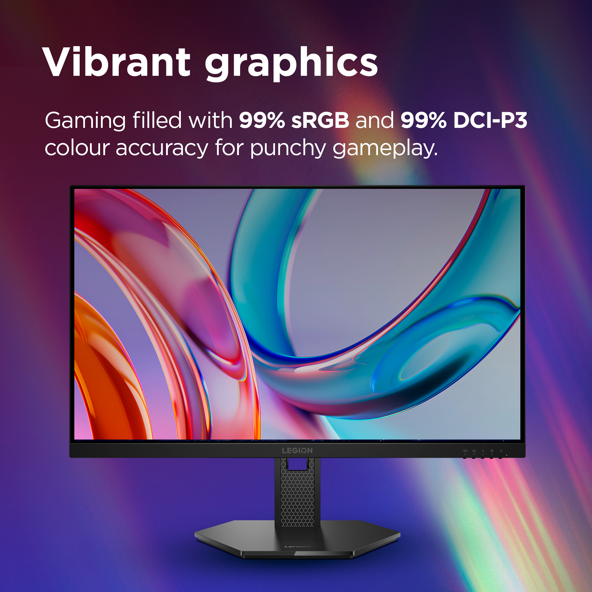 The 26.5-inch QHD display delivers crystalclear visuals that amplify every detail on screen.
