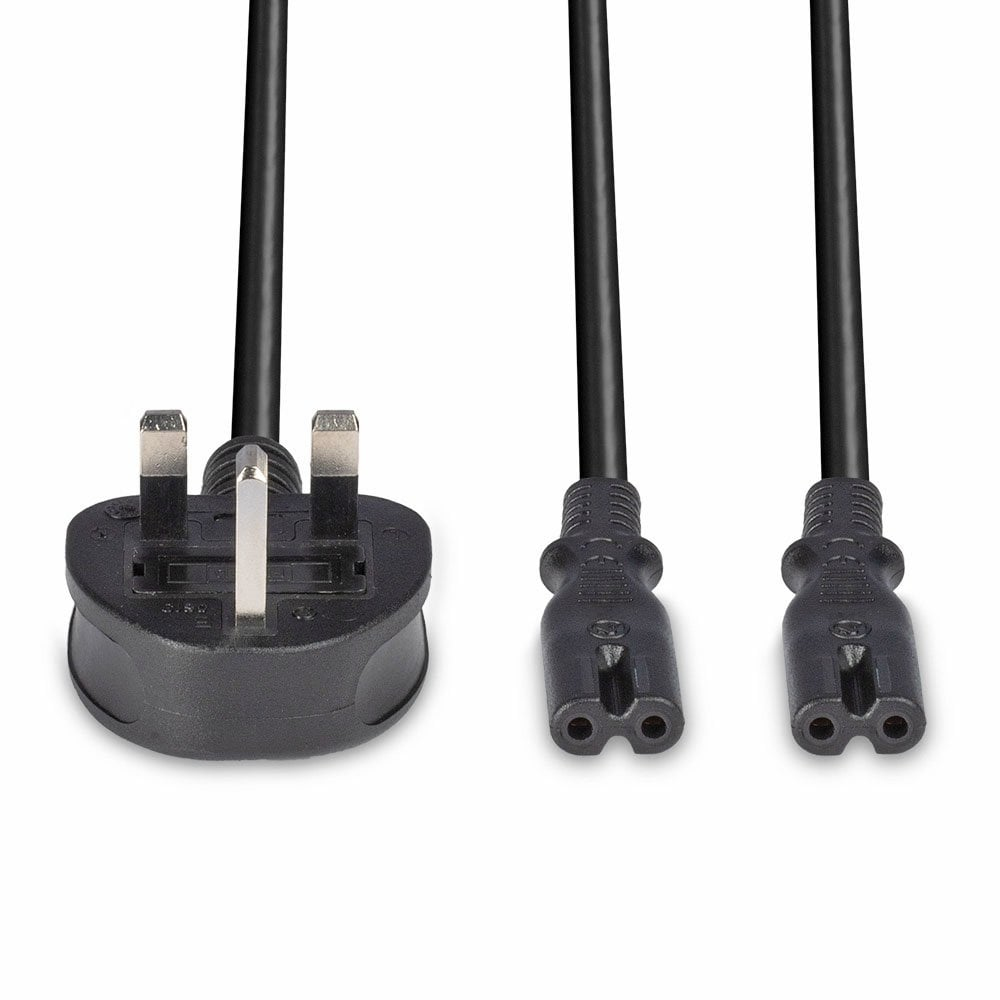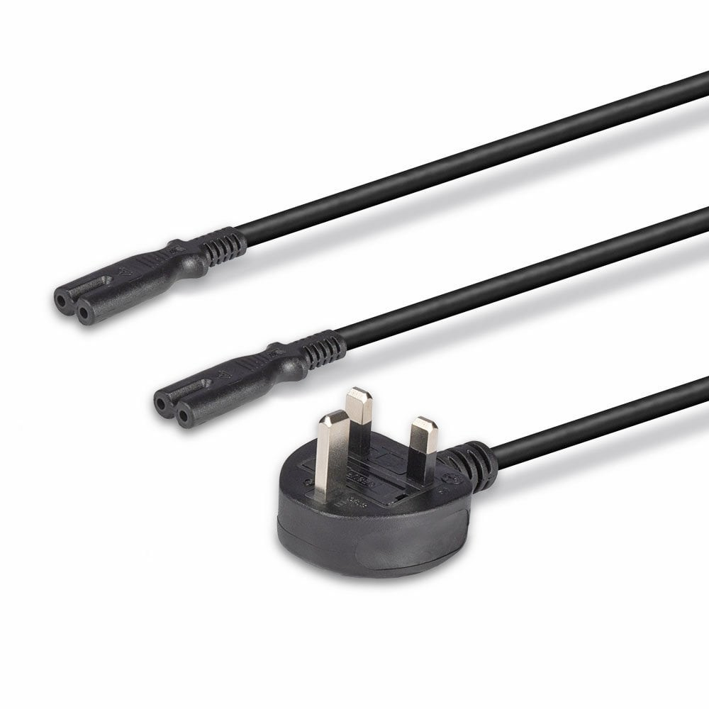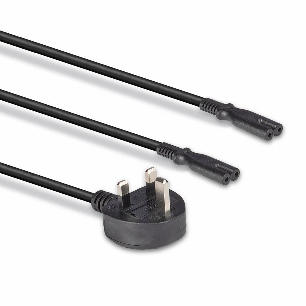 2.5m UK 3 Pin Plug to 2 x IEC C7 Splitter Extension Cable, Black |