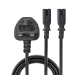2.5m Y Mains Power Cable UK 3 Pin Plug to 2 x IEC C7 |