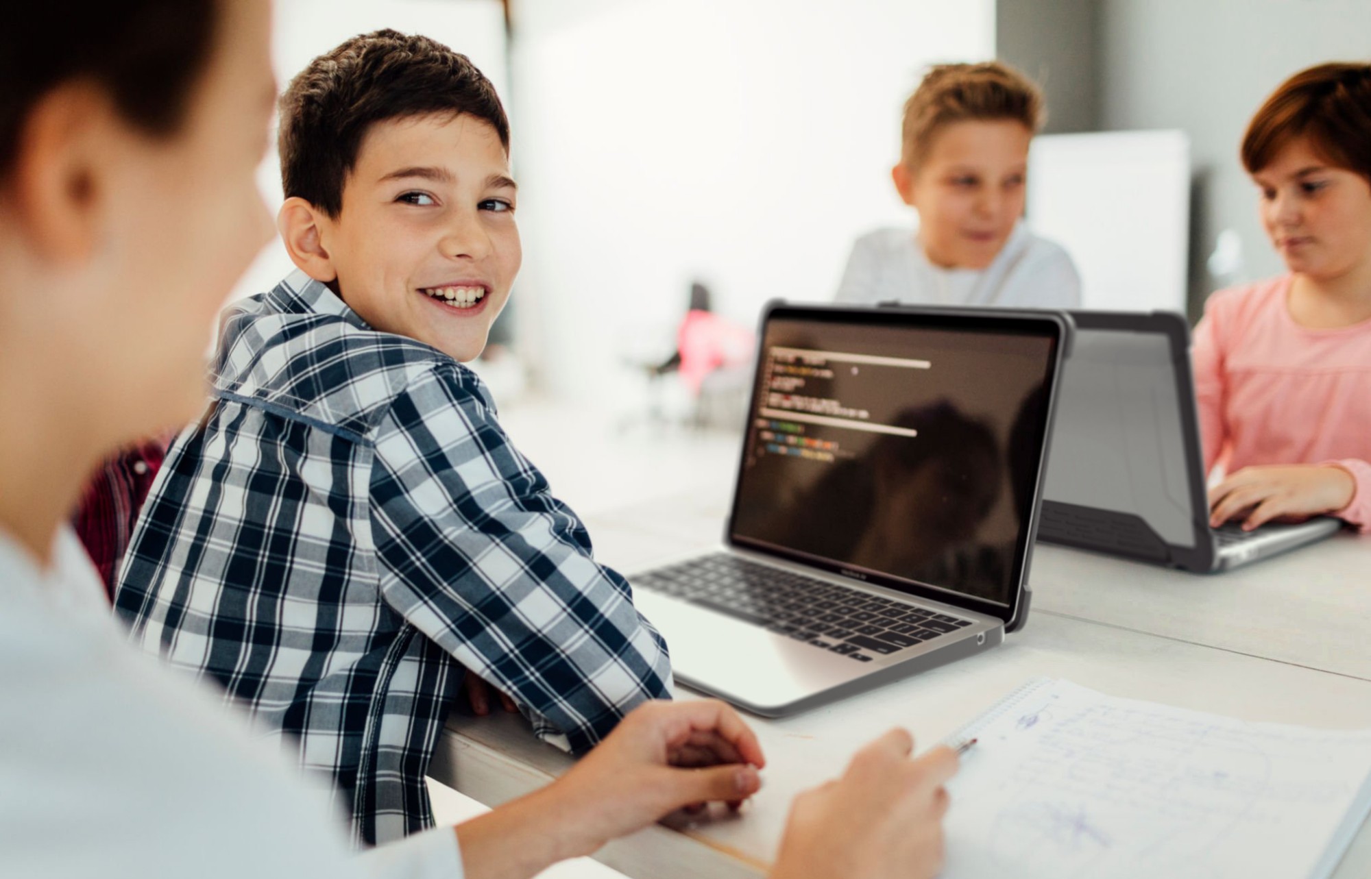 An all-new category of cases, the MAXCases Extreme Shell-L delivers robust, full-coverage protection in a new lightweight and budget-friendly design. The rugged top protects the expensive-to-repair device screen with a clear, rigid panel made of compound polycarbonate, surrounded by an impact-absorbing TPU bumper and enhanced corners. The device’s bottom is safeguarded against impact and scratches by another clear compound panel. Our textured MAXGrip wrap connects the panels, delivering added hinge protection and a wide grip-assist surface. As with all MAXCases custom-fit cases, the Extreme Shell-L delivers a snug, perfect fit and supports all device functions and port access. Custom colors, logos and/or MAXProtec antibacterial upgrade available with minimum quantity of 500 (additional fees apply). Reduce repair costs. protect eye health and support healthy sleep with a custom-fit blue-light filtering screen protector.