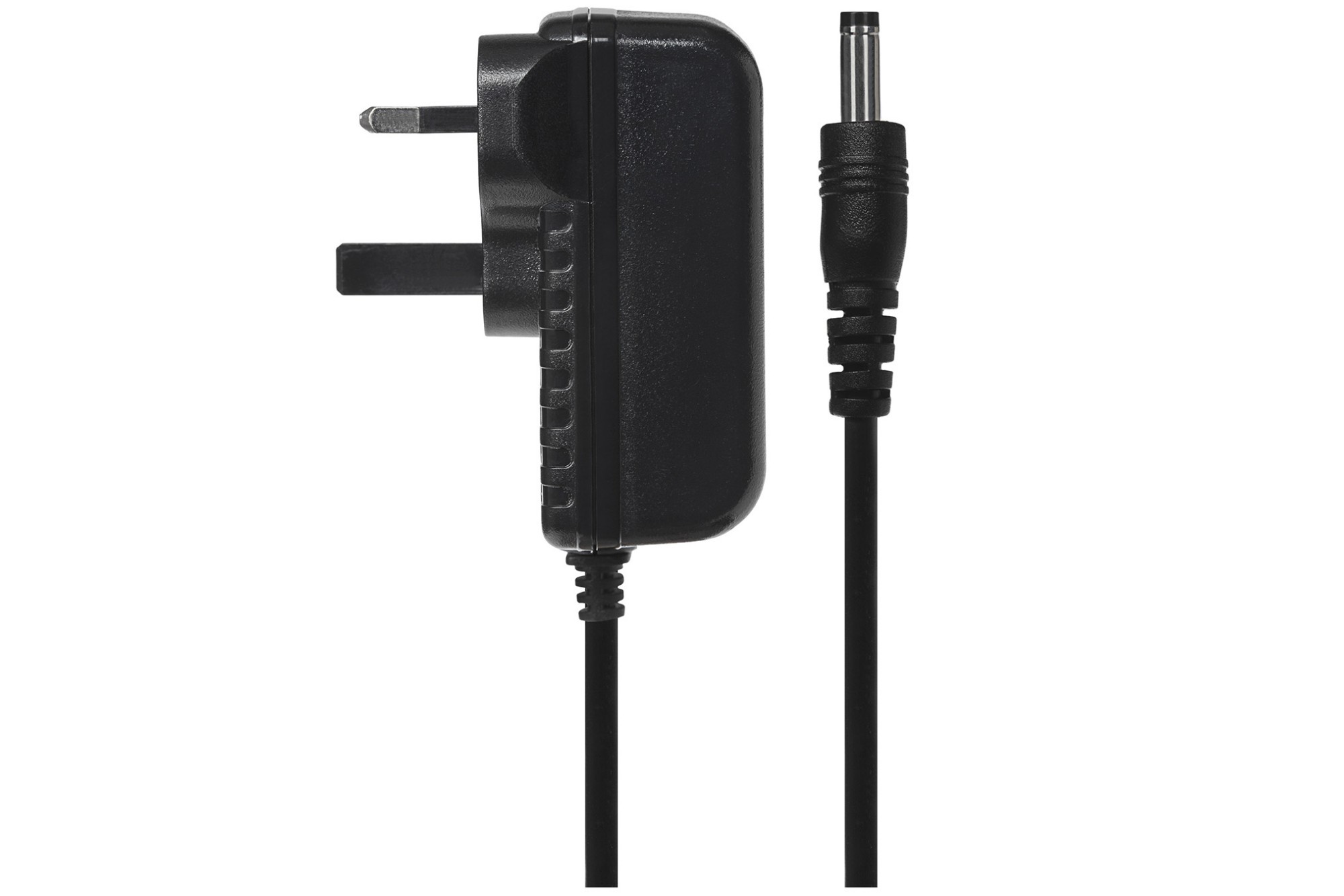 This Maplin UK Switching Power Supply 12V DC 2 Amp 24W 5.5 x 2.1 x 12mm Plug with a fixed UK plug and built-in over-Voltage, over-current and short circuit protection.