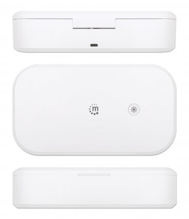 Manhattan UV Phone Sanitizer, Integrated UV LEDs to eliminate germs, viruses and bacteria, Quick 1-minute or 5-minute cleaning cycle, Auto-off UV light when opened, White, Three Year Warranty