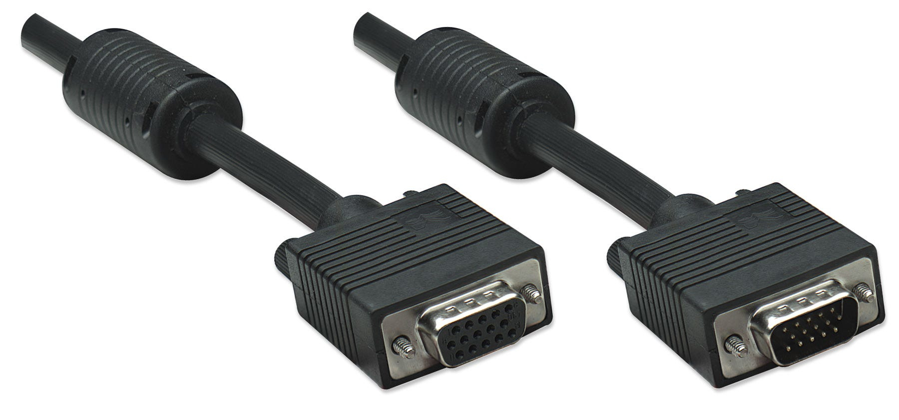 Manhattan VGA Extension Cable (with Ferrite Cores), 1.8m, Black, Male to Female, HD15, Cable of higher SVGA Specification (fully compatible), Shielding with Ferrite Cores helps minimise EMI interference for improved video transmission, Lifetime Warranty,