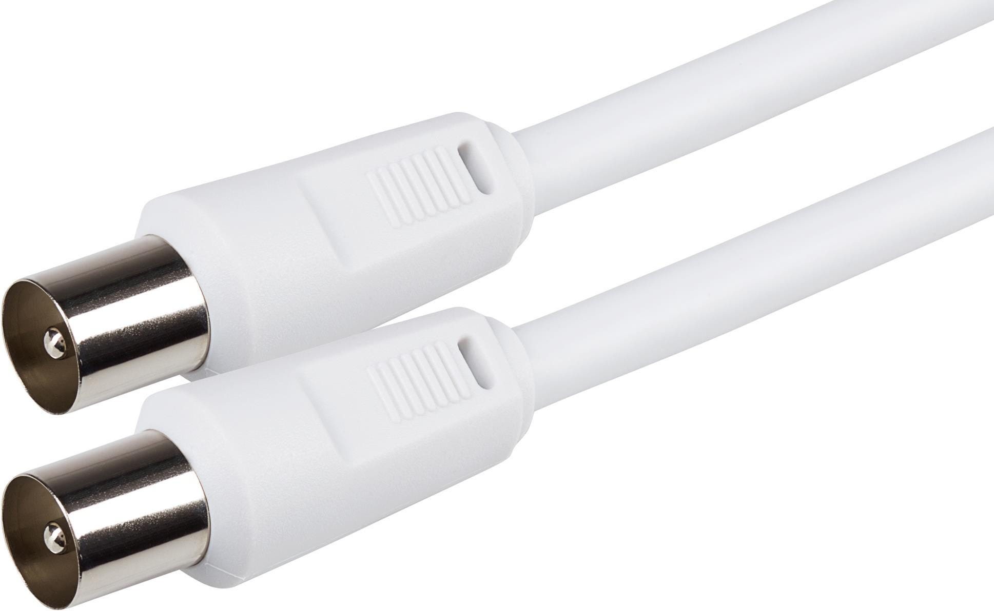 This Maplin RF Male TV Aerial Coaxial Cable is commonly used to connect Freeview and satellite boxes to coaxial points on the wall. This is a Coax Plug(male) to Coax Plug (male) cable.