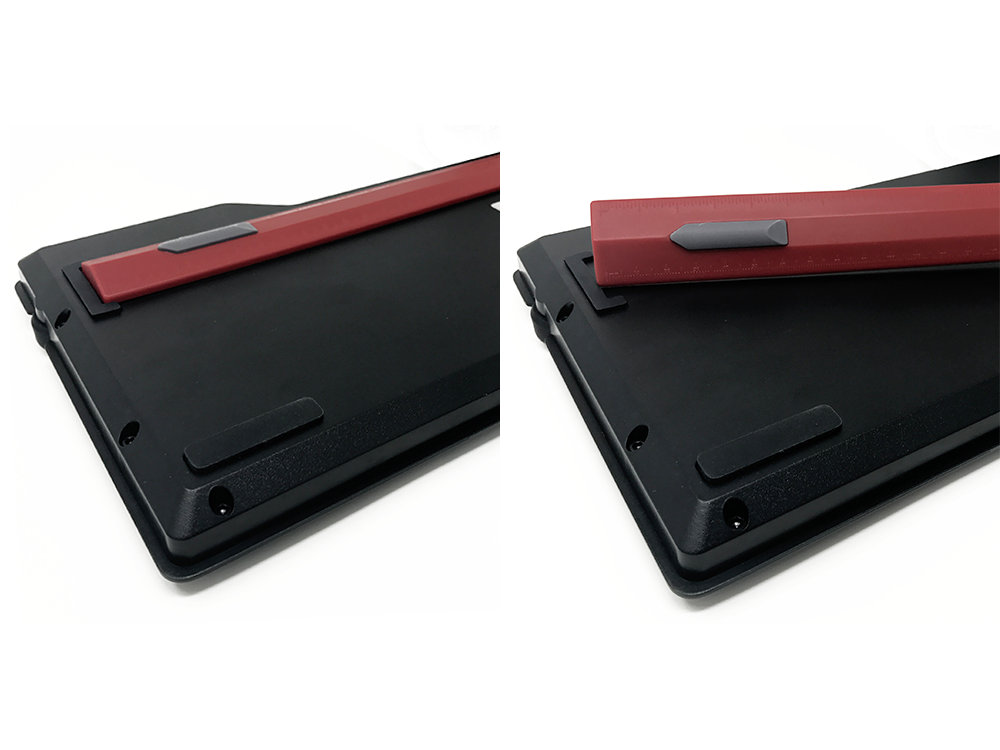 We got tired of those itty bitty plastic keyboard feet. They are fragile and typical. The magnetically attached Das Keyboard footbar raises the keyboard to an optimal 4-degrees. It looks sharp and can be used as a precise ruler when not in use as a footbar. 16-Inch red ruler is scaled on both sides. A ruler? Why not...