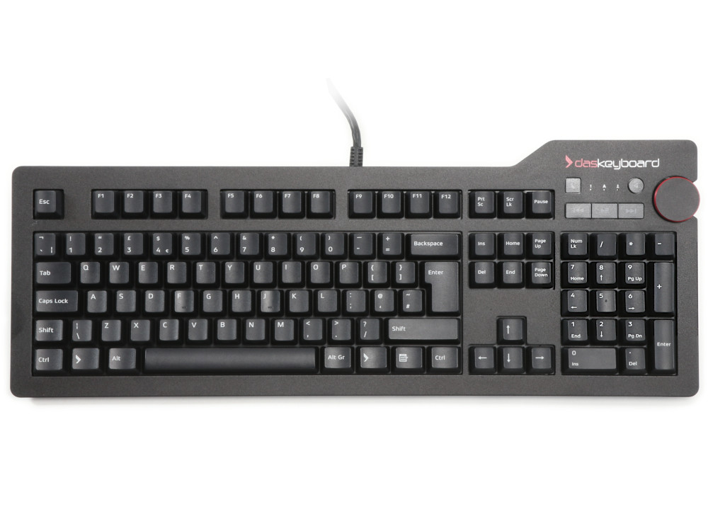 With its large volume knob, Das Keyboard 4 allows users to quickly adjust volume while on a Skype call, in a Google hangout, or streaming online music. The Das Keyboard 4 also provides quick access to dedicated media controls such as mute, play, pause, next and previous track. A quick-access instant sleep button has been added to save energy while going to lunch or attending meetings.
