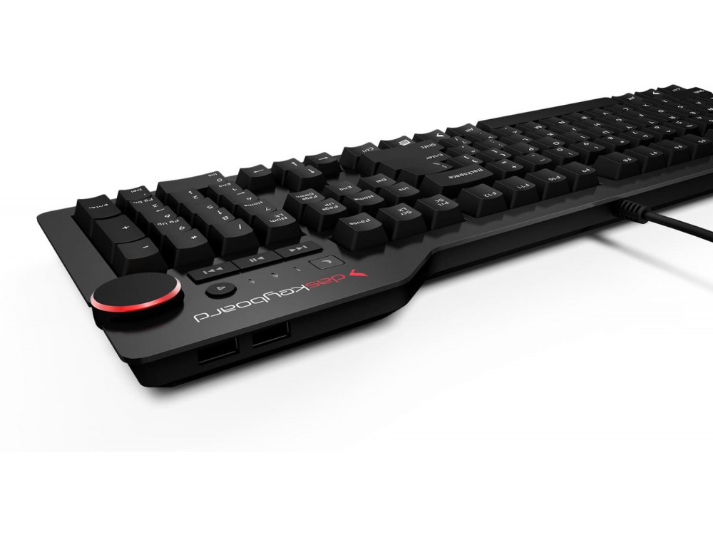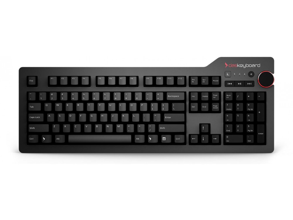 With its large volume knob, Das Keyboard 4 allows users to quickly adjust volume while on a Skype call, in a Google hangout, or streaming online music. The Das Keyboard 4 also provides quick access to dedicated media controls such as mute, play, pause, next and previous track. A quick-access instant sleep button has been added to save energy while going to lunch or attending meetings.