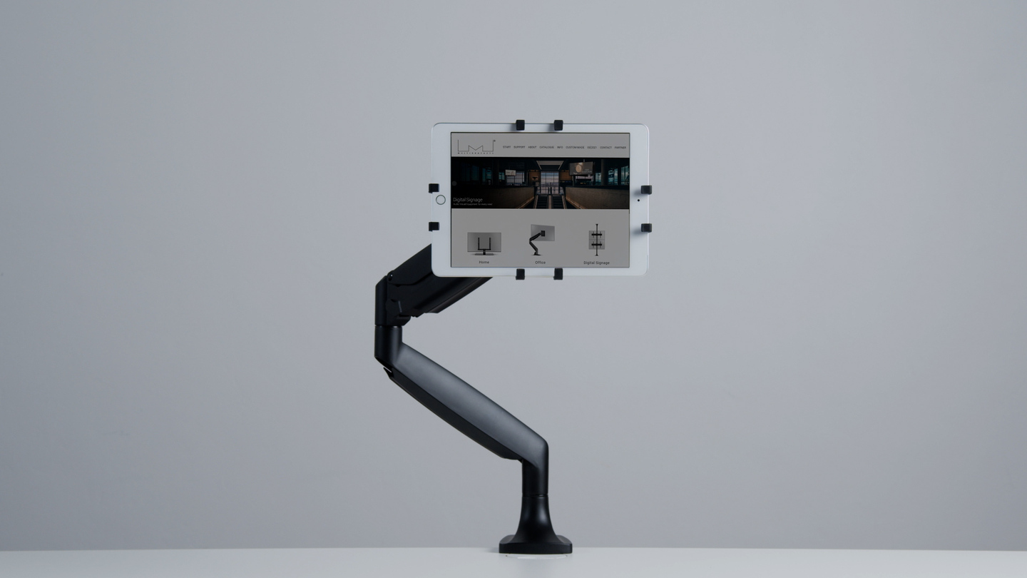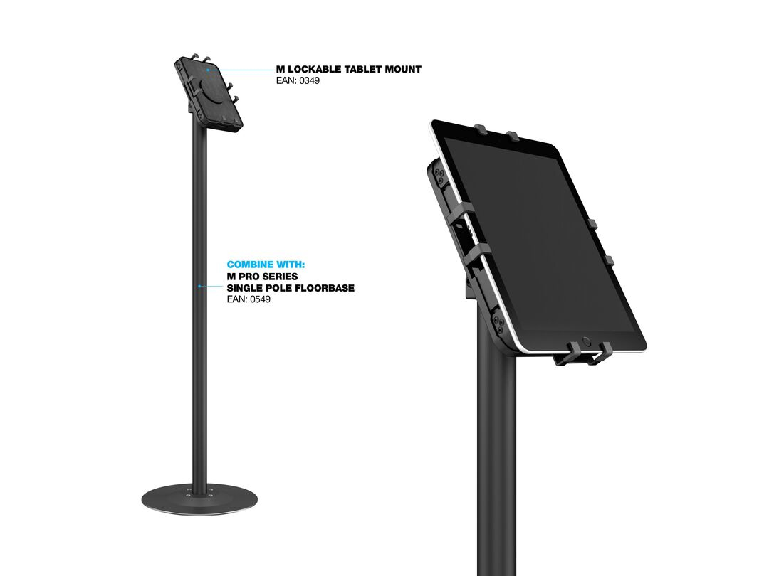 The M Lockable Table Mount easily converts a monitor mount to securely hold a tablet.