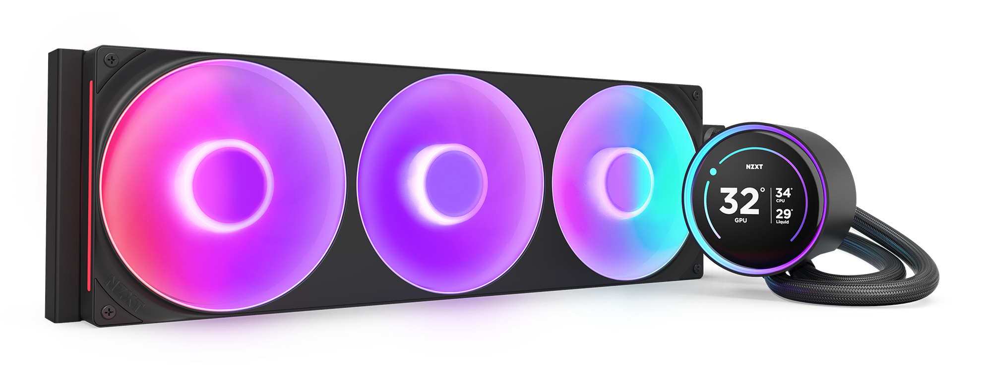 Back and better than ever, the Kraken Elite is powered by the custom-designed NZXT Turbine pump, delivering a remarkable 10%* boost in CPU cooling performance. The stunning 2.72-inch IPS screen with a dynamic RGB ring offers limitless personalization options, making the Kraken Elite an eye-catching focal point for any build.