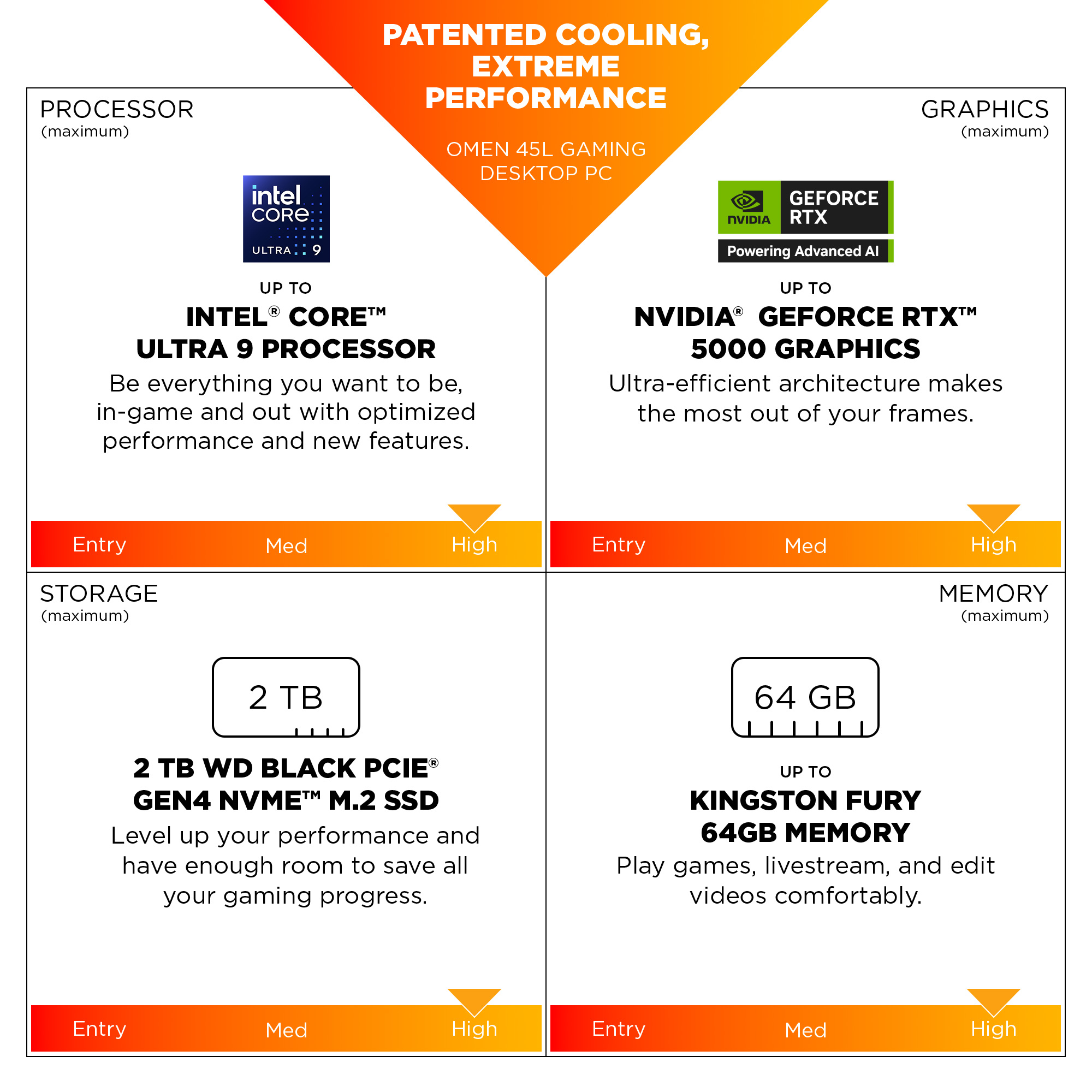 OMEN by HP 45L GT22-3003na Intel Core Ultra 9 285K 64 GB DDR5-SDRAM 4 TB SSD NVIDIA GeForce RTX 5090 Windows 11 Home Tower PC AI PC Black
