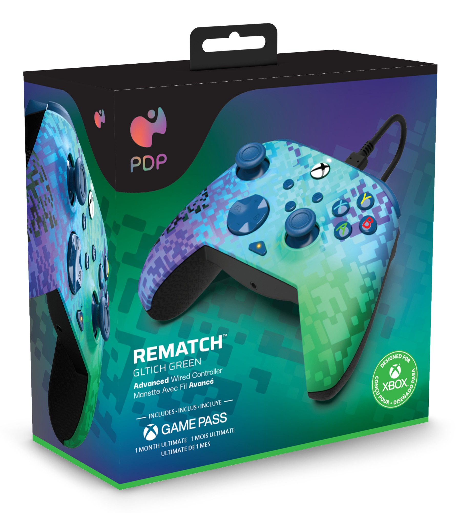 Ready for a rematch? Take your enemies down again and again with the enhanced features and customizability of the Glitch Green REMATCH Advanced Wired Controller, officially licensed by Xbox.