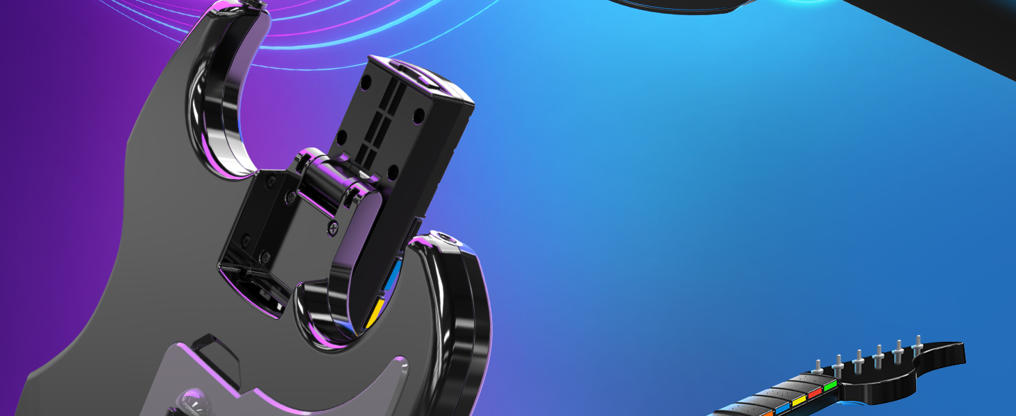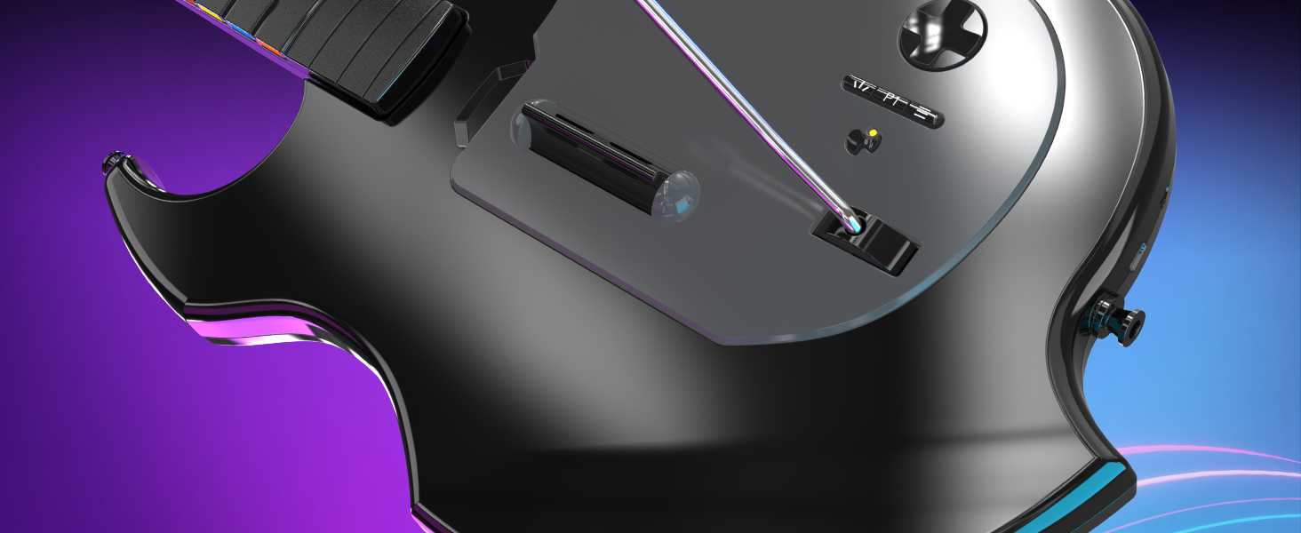 Rock On with the RIFFMASTER wireless guitar controller! The newest guitar in the market allows you to play music like a true rock star now on Fortnite Festival and Rock Band 4. With a unique design that is suitable for both left and right handed guitarists, everybody has a chance to dominate the competition.
