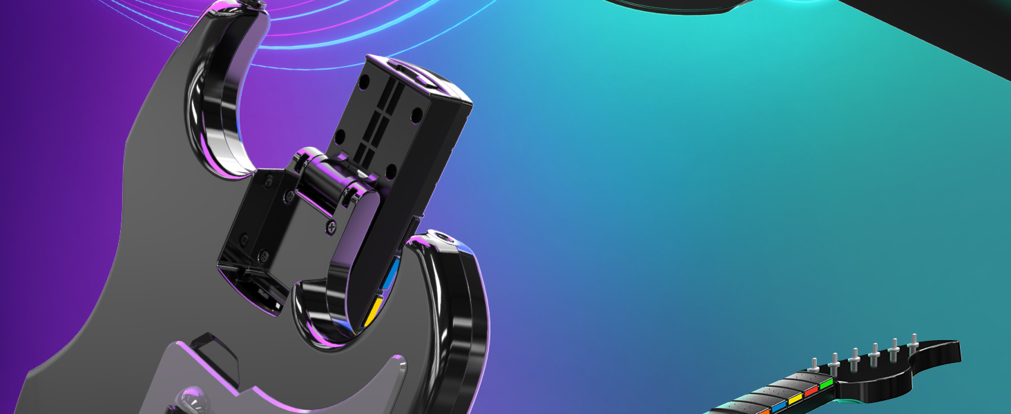 Rock On with the RIFFMASTER wireless guitar controller! The newest guitar in the market allows you to play music like a true rock star now on Fortnite Festival and Rock Band 4. With a unique design that is suitable for both left and right handed guitarists, everybody has a chance to dominate the competition.