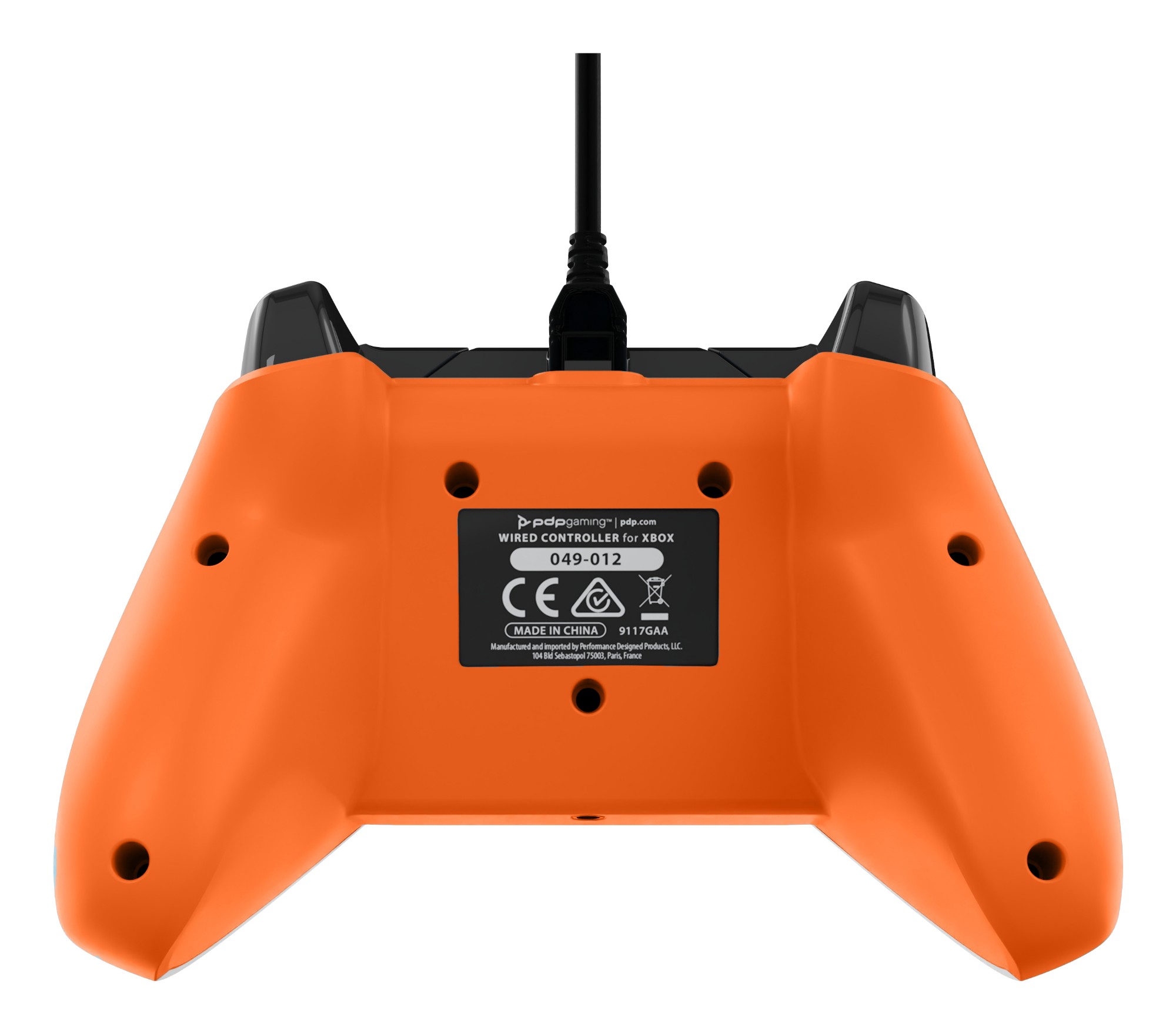 The Atomic Carbon PDP Wired Controller works on Xbox Series X|S, Xbox One, and Windows 10/11 and is an officially licensed product.