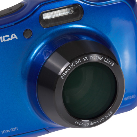 "Small, waterproof and easy to use, the PRAKTICA WP240 is the ideal camera for families on the go. Built with 20 Megapixels and 4x Optical Zoom, the WP240 boasts a slim colourful structure which is easy to operate for all ages.
