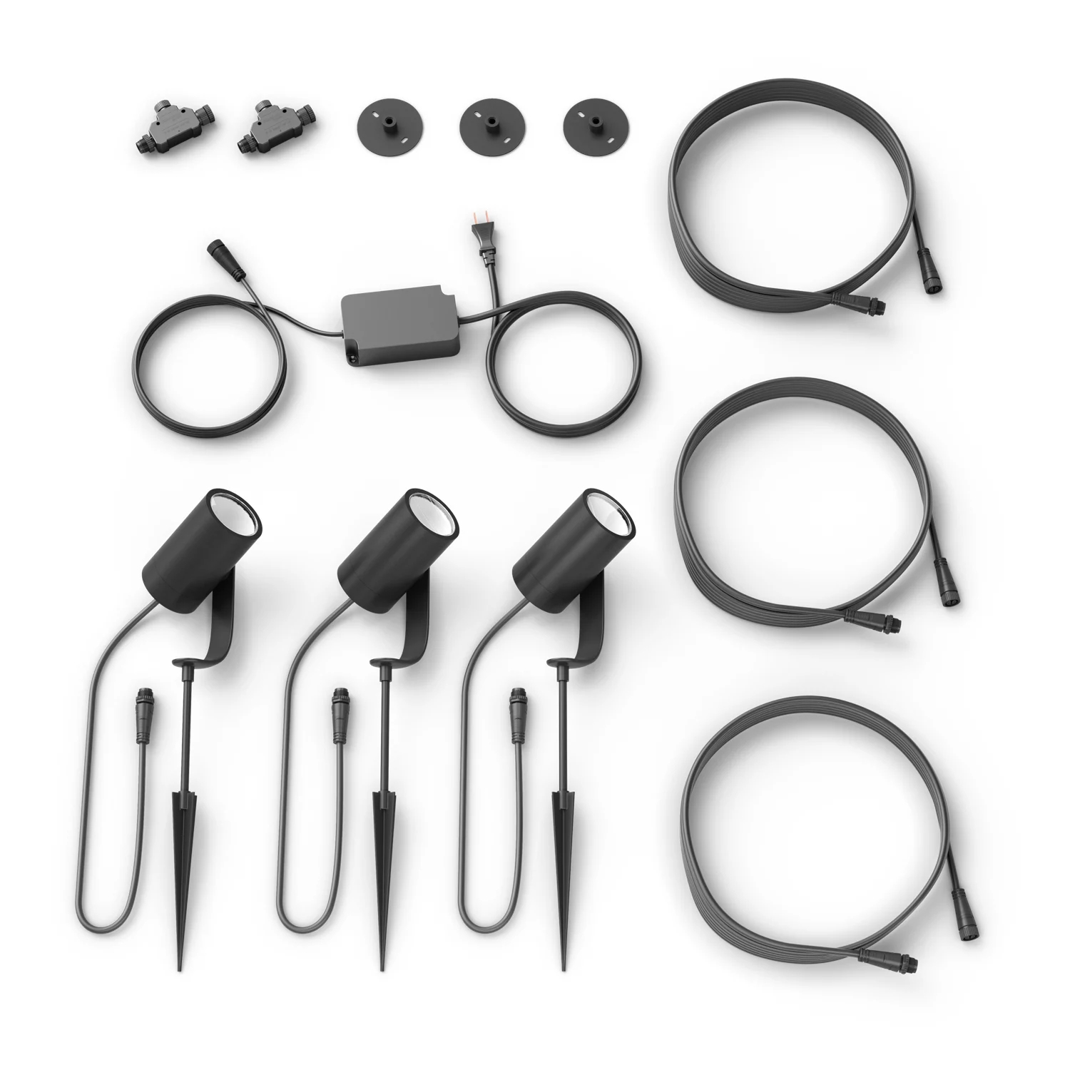 This Lily spot light 3-pack lets you highlight your favourite outdoor features, create interesting shadows and more. Simply connect the smart outdoor spotlights into any standard wall socket using the included low-voltage power supply to get millions of shades of white or coloured light in your garden.