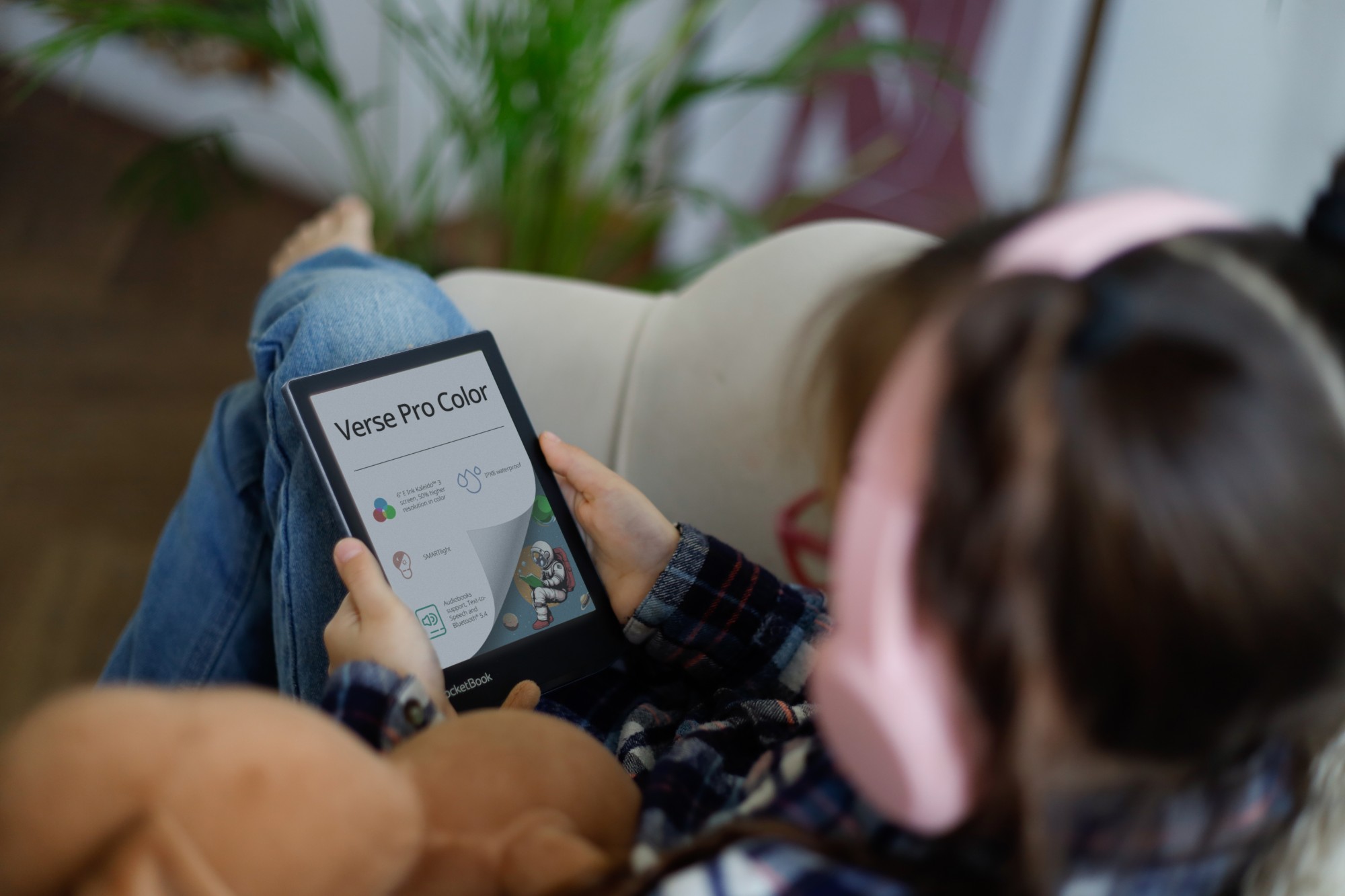 PocketBook Verse Pro Color. Display diagonal: 15.2 cm (6"), Technology: E Ink Kaleido, Display resolution: 1072 x 1448 pixels. Document formats supported: ACSM, AZW, AZW3, CBR, CBZ, CHM, DOC, DOCX, DjVu, EPUB, EPUB DRM, FB2, FB2.ZIP, HTM, HTML, MOBI,..., Audio formats supported: M4A, M4B, MP3, OGG, Image formats supported: BMP, JPEG, PNG, TIFF. Internal storage capacity: 16 GB, RAM capacity: 1000 MB. Processor frequency: 1800 MHz. USB connector type: USB Type-C, Headphone connectivity: 3.5 mm