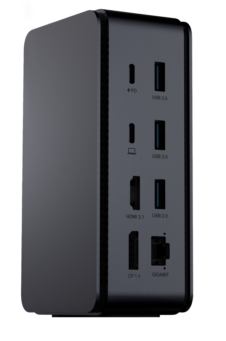 The Docking Station supports up to two high resolution 8K@30Hz monitors* and features the latest USB4 connections offering a data transfer speed of up to 40Gbps and up to 100W Power Delivery is accessible via the Docking Station’s USB-C PD port, however a power adapter is not included.