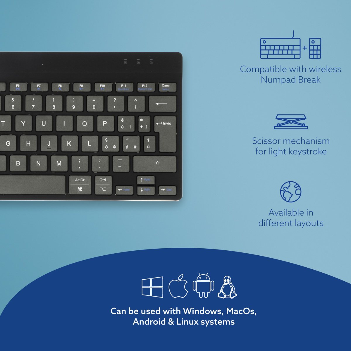 R-Go Tools Ergonomic keyboard R-Go Compact Break, compact keyboard with break software, QWERTY (IT), Bluetooth, black