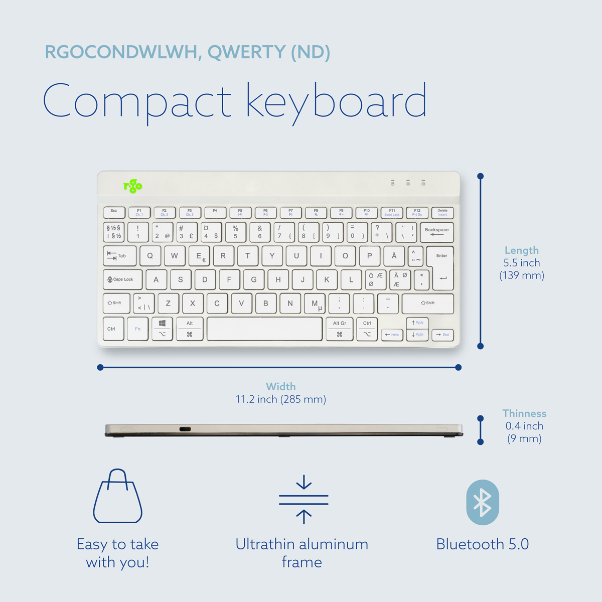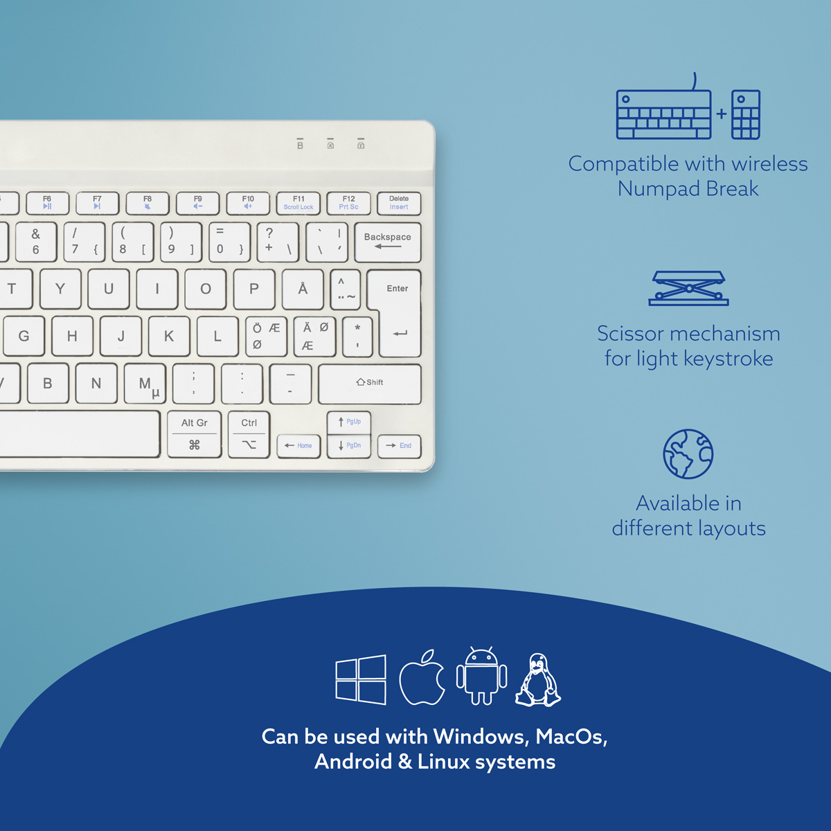 R-Go Tools Ergonomic keyboard R-Go Compact Break, compact keyboard with break software, QWERTY (NORDIC), Bluetooth, white