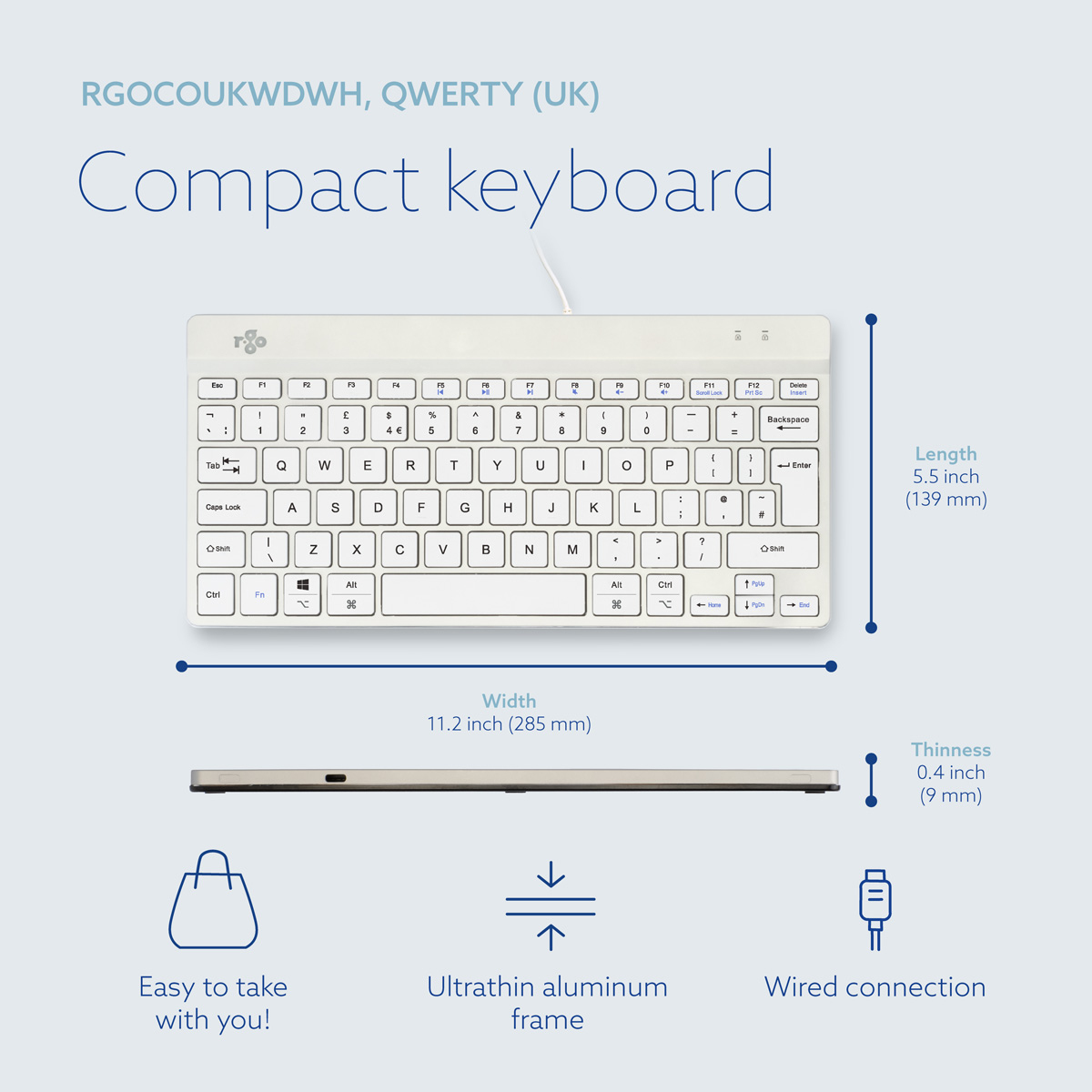 R-Go Tools Ergonomic keyboard R-Go Compact Break, compact keyboard with break software, QWERTY (UK), wired, white