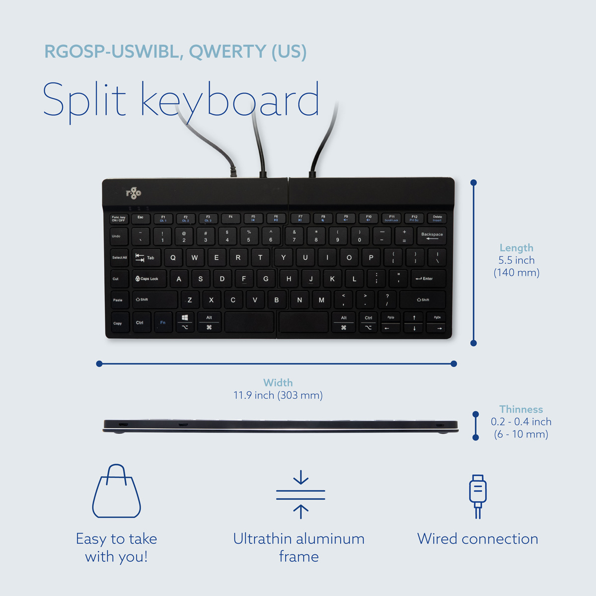 R-Go Tools Ergonomic keyboard R-Go Split Break v2 with break software, ergonomic split keyboard, QWERTY (US), Wired, black