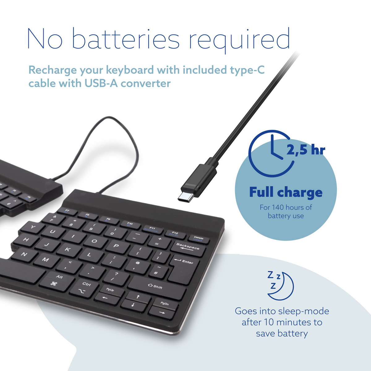 R-Go Ergonomic Keyboard Split break - Keyboard - with integrated break indicator - wireless - Bluetooth 5.0 - QWERTY - UK - black |