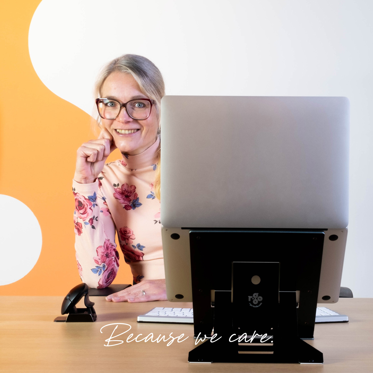 The R-Go Riser Document is made of Hylite®: the thinnest aluminum composite material in the world. This makes the stand very light. It weighs only 6.1 oz (190 grams), but has a load capacity of 1.7 lb (5 kilos). Suitable for all tablet and 10- to 22-inch laptops. This ultra-thin laptop stand is easy to carry in your laptop bag. Ideal for healthy working everywhere!