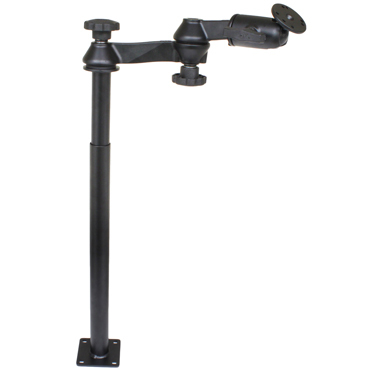 The RAM-VP-SW1-1218 consists of a 18" lower female Tele-Pole, 12" upper male Tele-Pole, double swing arm and 2.5" round base that contains the universal AMPs hole pattern. The lower female Tele-Pole will attach to all RAM vehicles bases that do not contain a welded female Tele-Pole. The height of the Tele-Poles, combinded, can easily be adjusted by turning the knob at the top of the post. Once the knob has been tightened, the Tele-Pole becomes a rigid support for connecting devices or cradles. The double swing arm allows you to twist and tilt the viewing angle of your connected electronic device, when mounted on your RAM Vehicle Mount. The rotating swivel arm gives you even more viewing positions for your mounted electronic device while holding everything firmly in place. The length of the double swing arm is 12".