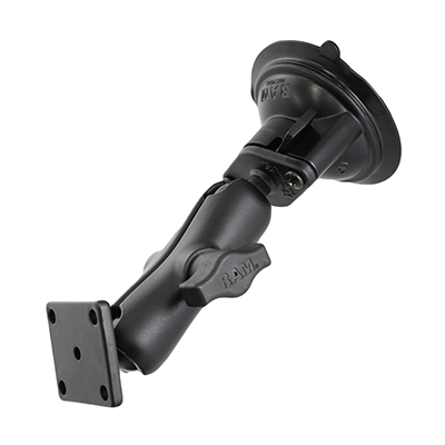 The RAM-B-166-347U, twist lock suction cup mount consists of a 3.3" suction cup locking base and 2" x 1.7" square base end. The square base has four pre-drilled holes at each corner, making the universal AMPs hole pattern. The mount is designed with a RAM 1" diameter patented rubber ball and socket system that has adjustment points at both ends of the double socket arm; this allowing for almost infinite adjustment and perfect viewing angles. Simply attach the suction cup base to the windshield of your vehicle for an easy and safe way to view your handheld device in your vehicle. High quality materials ensure your electronic device is safe, secure, and within easy reach. RAM's patented design also dampens shock and vibration helping to extend the life of your mobile device.