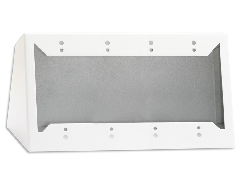 The DC-4W desktop chassis holds one, two, three or four Decora®-style products, including RDL remote controls and connector plates. Installation is facilitated using the included mounting plate, which allows the chassis to mount to a tabletop or on a vertical surface such as a cabinet or wall. The plate is secured in position, then the chassis slides into a locked position where it is secured with screws. Model numbers with a suffix "W" are white, with a suffix "B" are black and with a suffix "G" are gray to complement RDL stainless steel remote controls and plates. All DC- boxes are constructed from welded steel with a high quality powder coated finish.