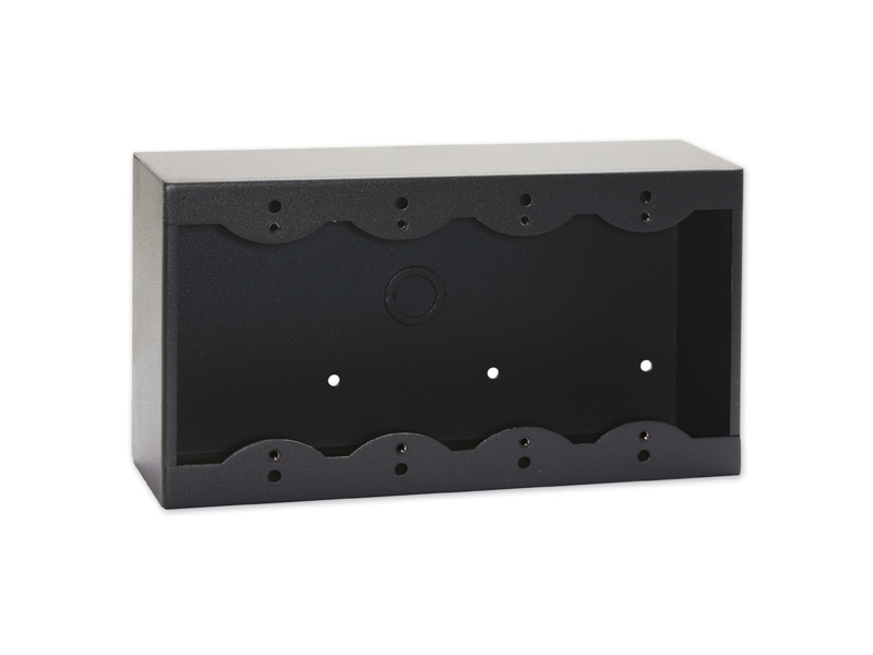 The SMB-1, 2, 3 and 4 surface mount boxes hold one, two, three or four Decora®-style products, including RDL remote controls and connector plates. Knockouts are provided for fastening standard metric or North American conduits to the rear of the box and to either the upper or lower surface, depending on the orientation of the box when it is mounted. The sides and top or bottom of the box maintain a smooth surface for a finished appearance superior to that of a standard electrical box. Model numbers with a suffix "W" are white, with a suffix "B" are black and with a suffix "G" are gray to complement RDL stainless steel remote controls and plates. All SMB- boxes are constructed from welded steel with a high quality powder coated finish.
