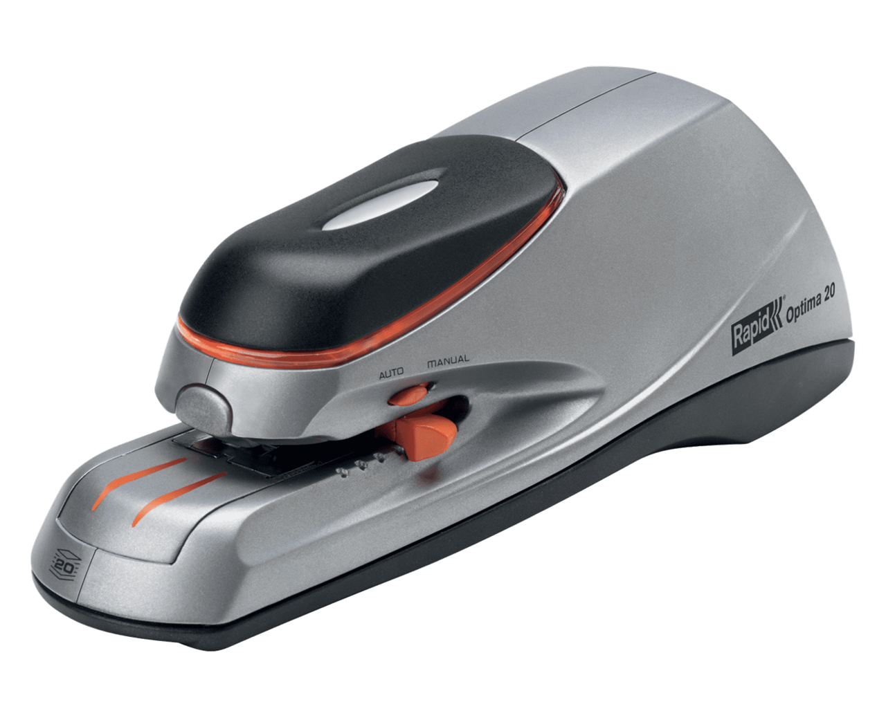 The Rapid 20E electric stapler provides effortless stapling for up to 20 sheets of paper at a time (80 gsm), saving time at home or at work. It can be manually controlled (by pushing on the front cap), or fully automatic as the stapler detects when paper has been inserted. The compact size is ideal for a desktop. This automatic stapler precisely positions staples on the paper using the staple placement guide and ensures jam-free stapling. Ideal for use in the office, reception areas, cashier desks or at home. You will never run out of staples due to the LED low staple indicator light which flashes when running low. Hygienic stapling due to no-touch contactless use. Dual powered by a mains adaptor (included) or 6x AA batteries (not included). Supplied with a box of 1000 x Optima 56 Staples.