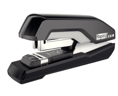 This professional halfstrip stapler, equipped with patented SuperFlatClinch technology, reduces your paper stacks by 40%. Unique design for great combination of both desktop and in-hand stapling.