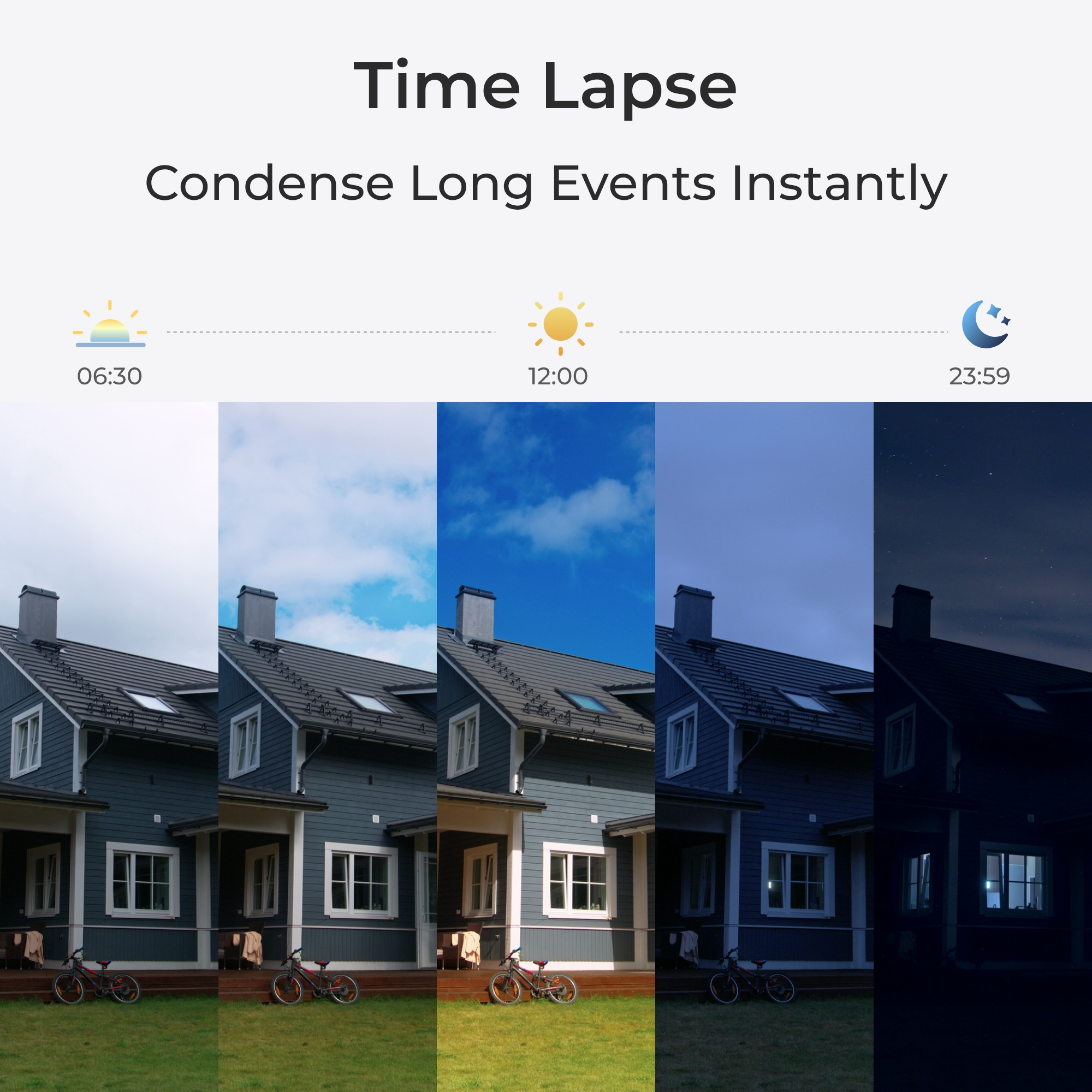 Easily observe hours, days, or even weeks of footage condensed into just a few captivating minutes.