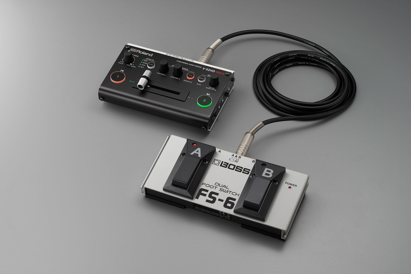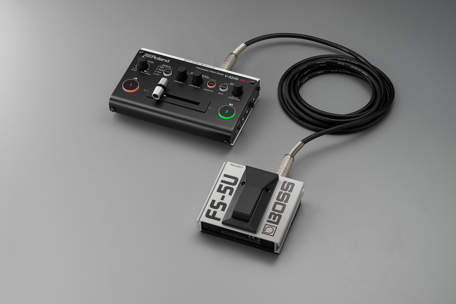 If you give demonstrations or perform in your livestreams, your hands are busy with that task. The V-02HD MK II supports control with up to two optional BOSS footswitches, allowing you to direct your stream without interrupting your presentation. Stomp on a footswitch to switch camera angles, cut to a static image, transition scene layouts, fade picture-in-picture windows, and more.