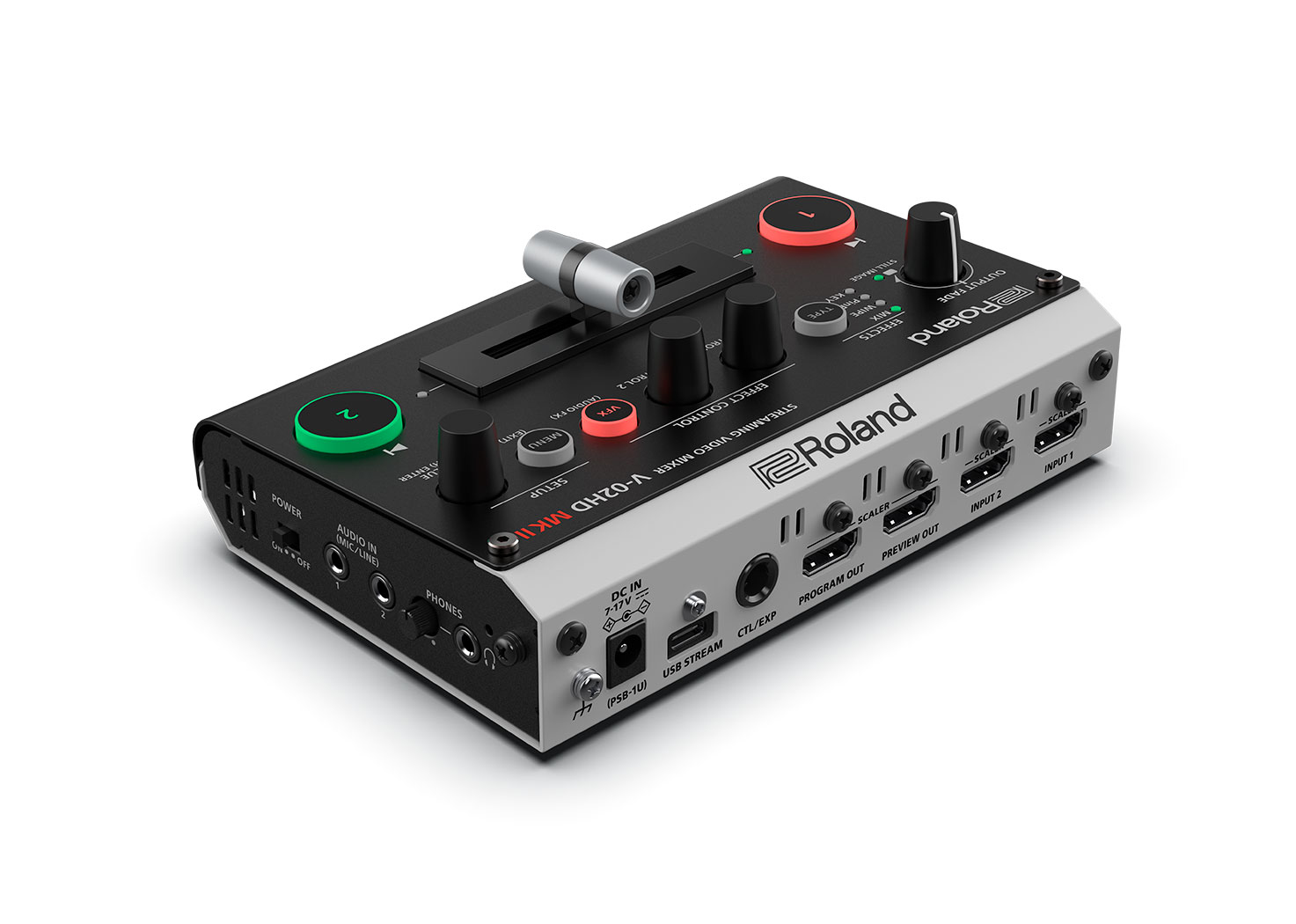 Ditch the webcam and step up your livestreams with the Roland V-02HD MK II Streaming Video Mixer. Compact, affordable, and simple to use, this desktop device allows you to connect and switch two high-quality HDMI cameras and send them directly to your favorite streaming platform over USB-C. You can also mix in audio sources via dedicated inputs and HDMI, apply video effects and transitions, and more. With the V-02HD MK II, you have the interface you need to bring higher production values to your live video productions.