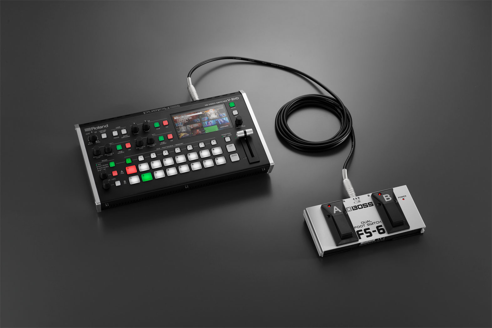 Stomp on a BOSS single or double footswitch to execute over 100 different switcher commands. Cut to a still image, transition PIP on/off the screen, or drop in a keyed lower third title. It’s also possible to switch the aux output between presenter notes and stage manager messages, turn automatic switching mode on/off, and much more.