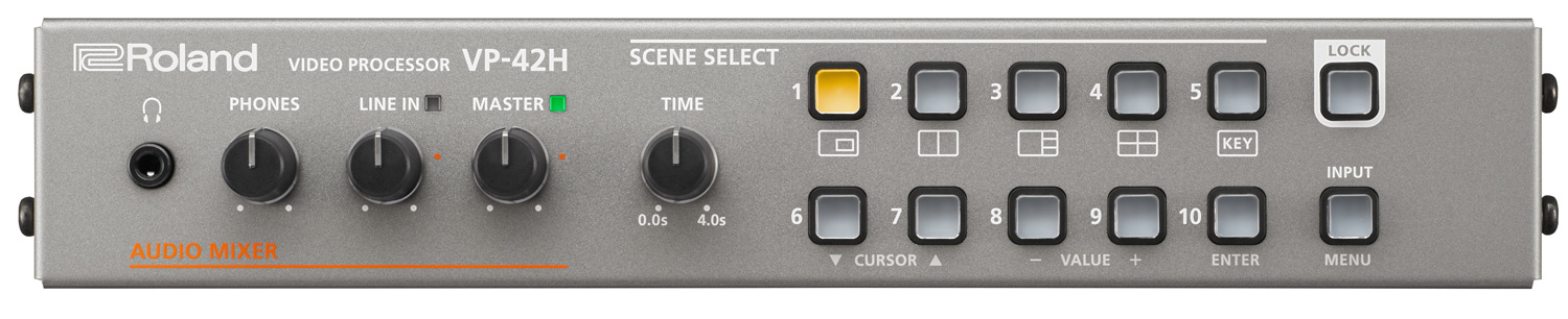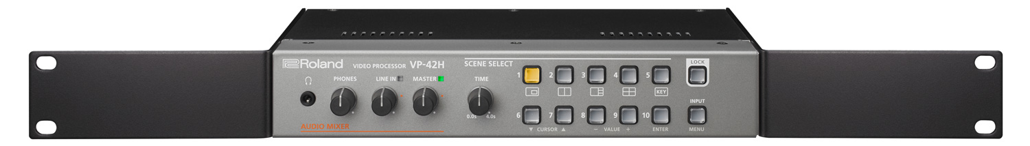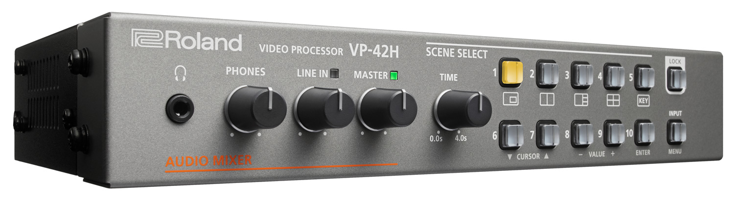 The Roland VP-42H Video Processor layers and arranges multiple video sources to a single screen with dynamic transitions for effective and engaging presentations,