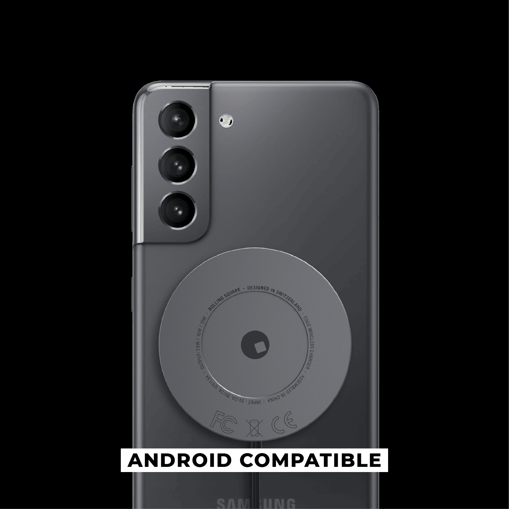 The EDGE® Wireless Charger is fully compatible with iPhone MagSafe devices (12 and up), as well as iPhone 8 and up and all Android devices that support wireless charging. Smartphones except iPhone 12, 12 Mini, 12 Pro and 12 Pro Max, don’t feature internal magnets. EDGE® Wireless Charger comes with an ultra-thin Magnetic Ring that can be attached to your phone or your phone’s case, to make it fully compatible.