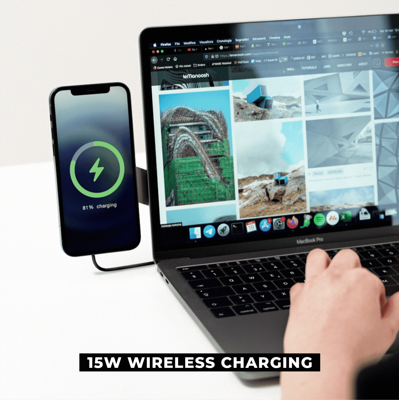 The EDGE® 15W Wireless Charger is fully compatible with iPhone MagSafe devices (12 and above), as well as iPhone 8 and above and all Android devices that support wireless charging. It's made of CNC machined aluminum and with N52 magnets.
