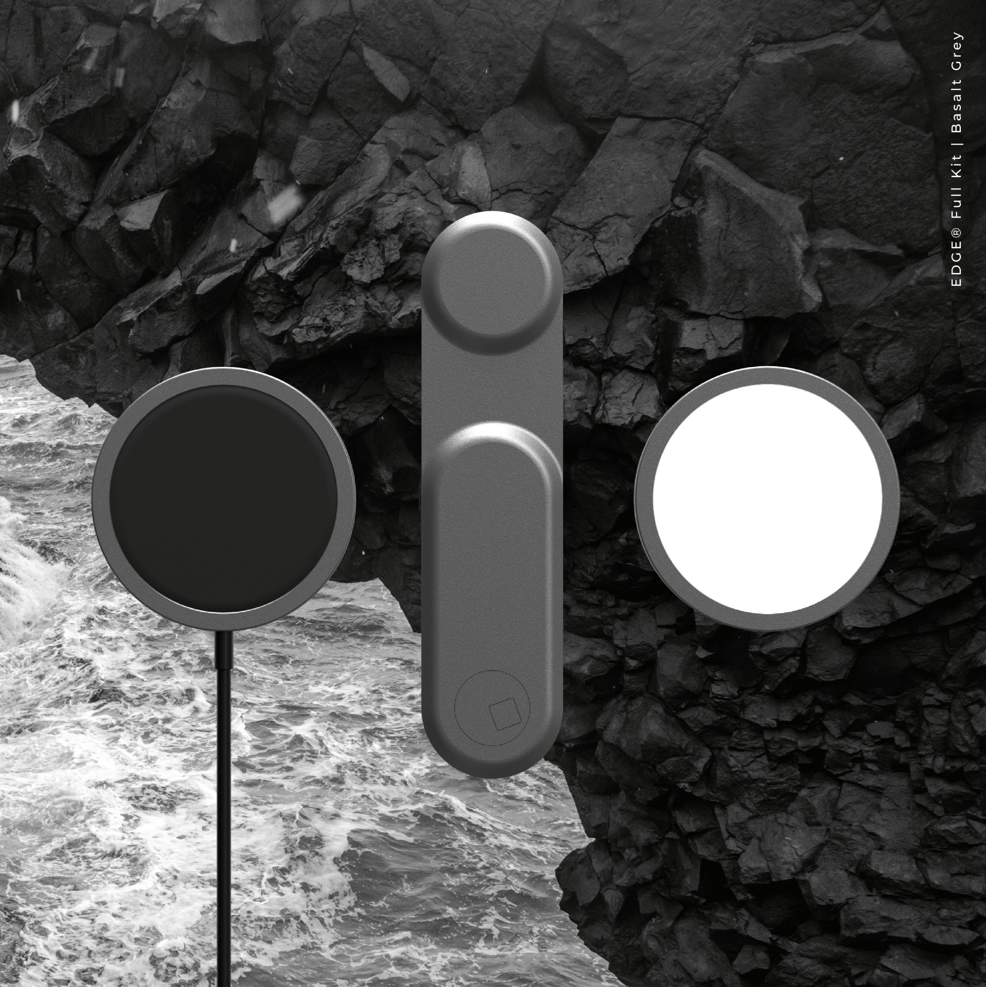 The EDGE® Mount serves as the basic component of the ecosystem, where you can attach your phone, your wireless charger, or your light.
