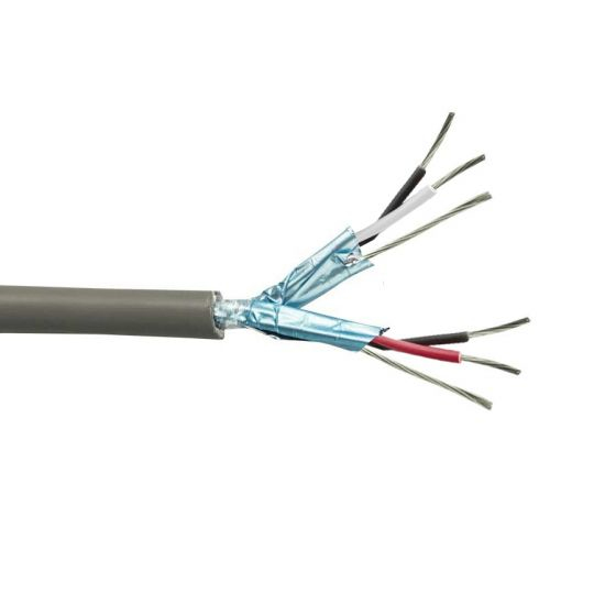 BALANCED LINE LEVEL AUDIO- LOW SMOKE ZERO HALOGEN- 4C/22 AWG TC TWISTED PAIR, EACH PAIR AL FOIL SHIELD W/DRAIN, EN50575:2014 Eca, HEAVY DUTY LSZH JKT- GRAY BULK CABLE - 1000FT/305M SPOOL