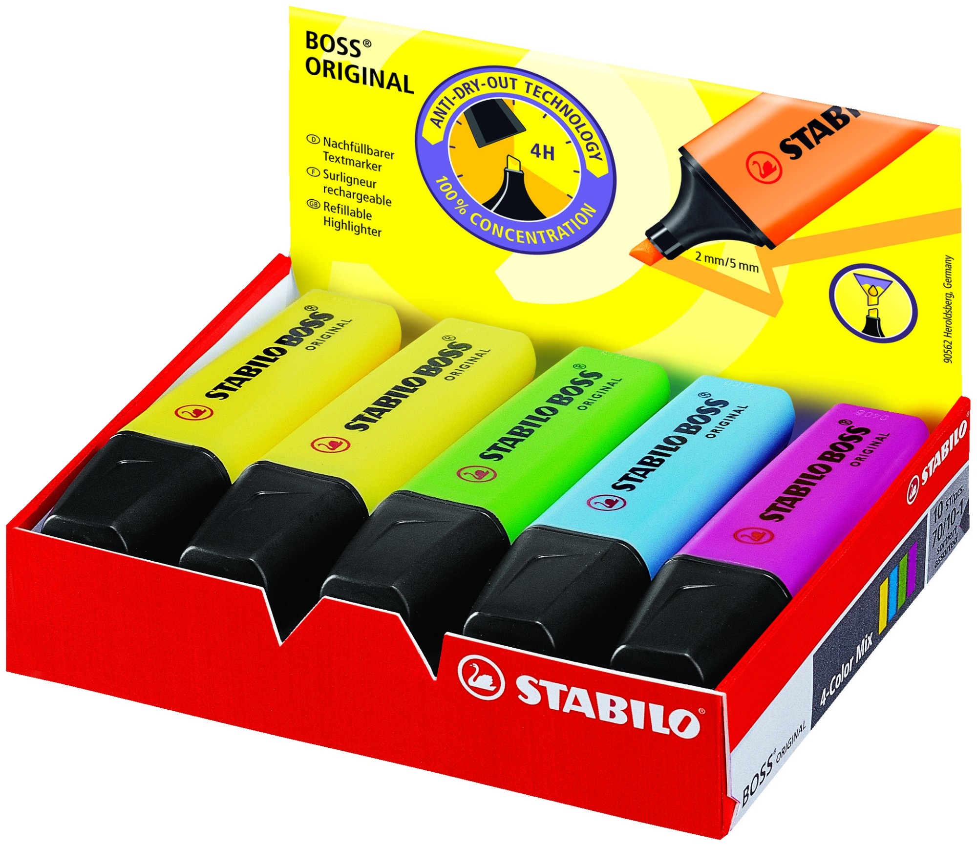 A box of 10 BOSS Highlighters in assorted colours