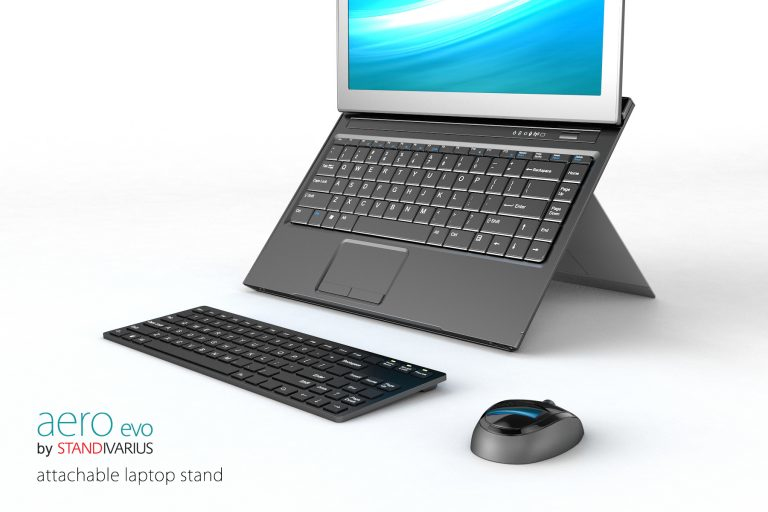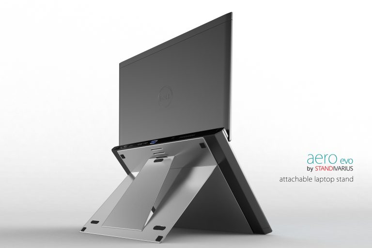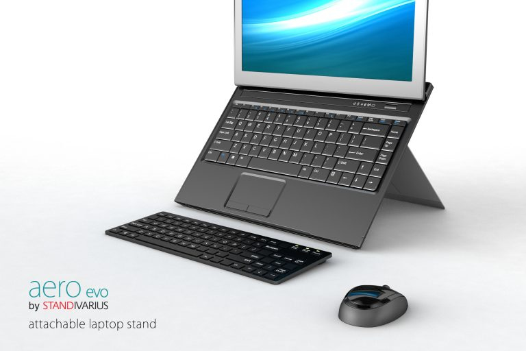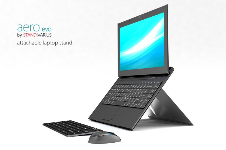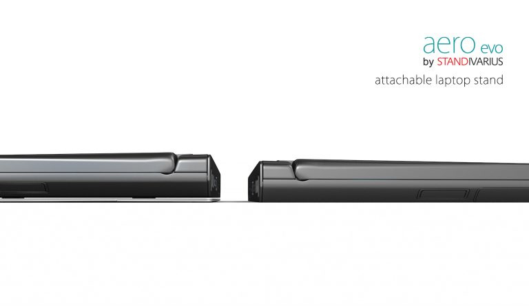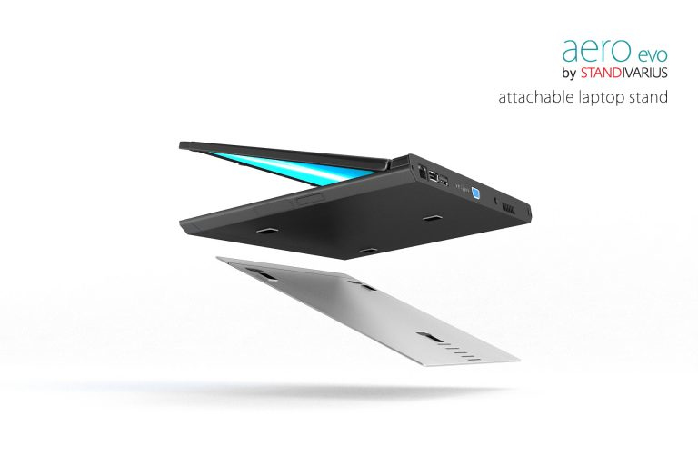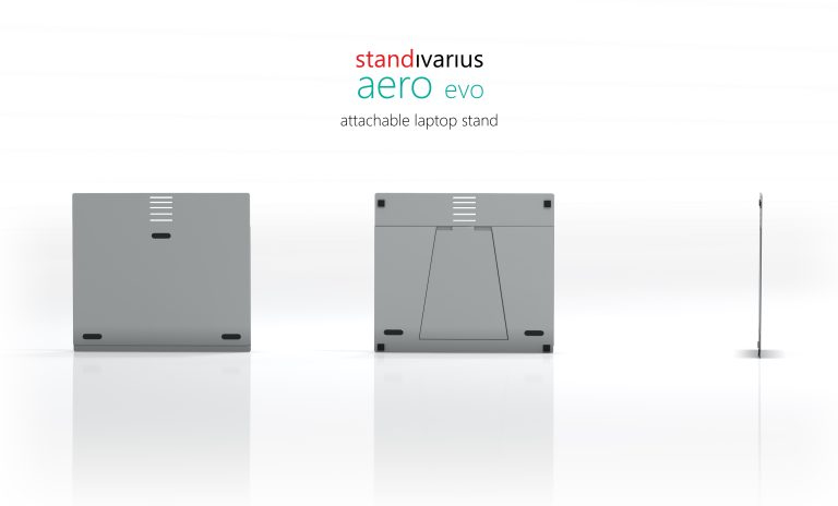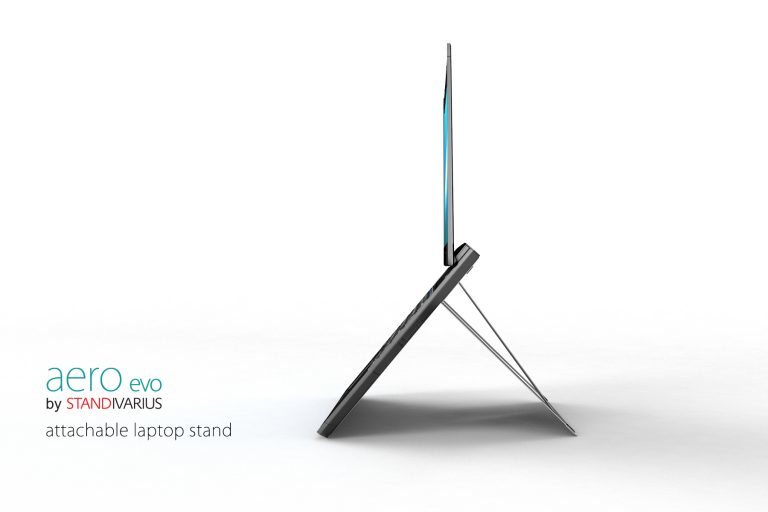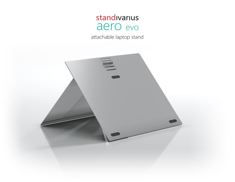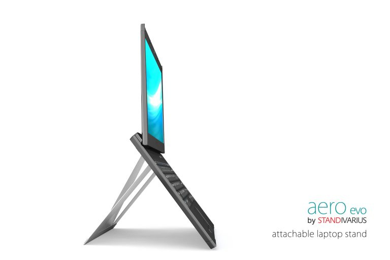 Super thin integrated ergonomics: The standivarius aero evo is an ergonomic laptop stand attached to the bottom of the laptop for business comfort and pain-free work.