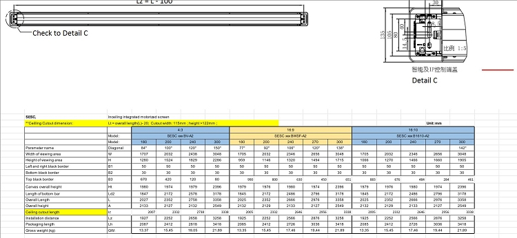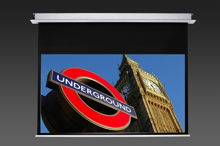 Made with such care and attention it is shame to hide it in the ceiling!. When fitted you will hardly notice the screen other than a very smart ribbed aluminium profile edged by a stylish curved end panel at each side of the screen. As it is all white it will blend in with most ceilings.